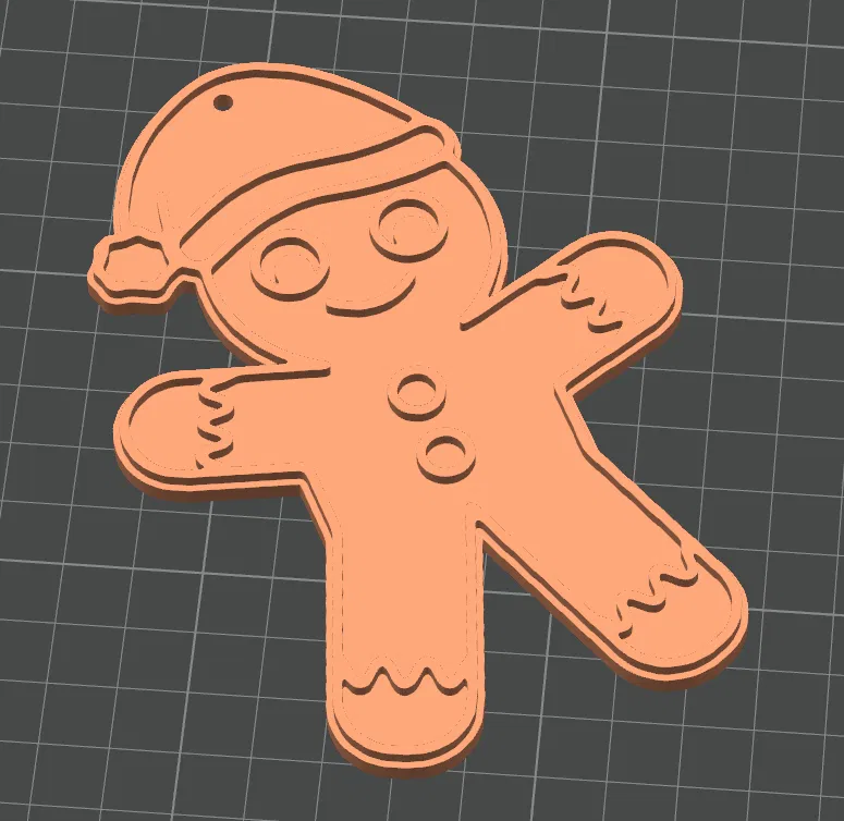 Mô hình bánh gừng đội nón, thích hợp để trang trí cây thông Noel. Đặc biệt, bạn có thể in sản phẩm này với nhiều màu sắc khác nhau ngay cả khi chỉ sử dụng máy in 1 sợi (single-filament printer).