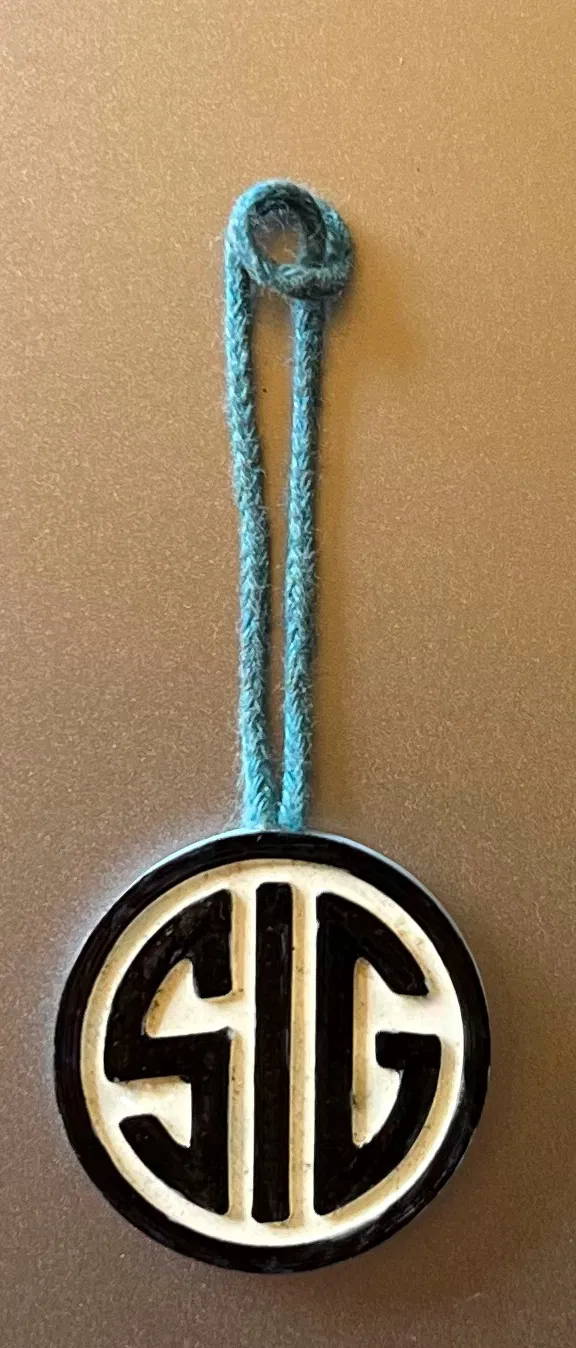 Móc chìa khóa dẻo có huy hiệu Sig Sauer. Tui làm cái móc chìa khóa này vì tui muốn có một cái móc mà nó mềm dẻo mà vẫn gắn vô chìa khóa ngon lành. Tui thắt một nút trên một đoạn dây, rồi tui dán vô cái lỗ khoét ở mặt sau để tạo một mối nối chắc chắn.