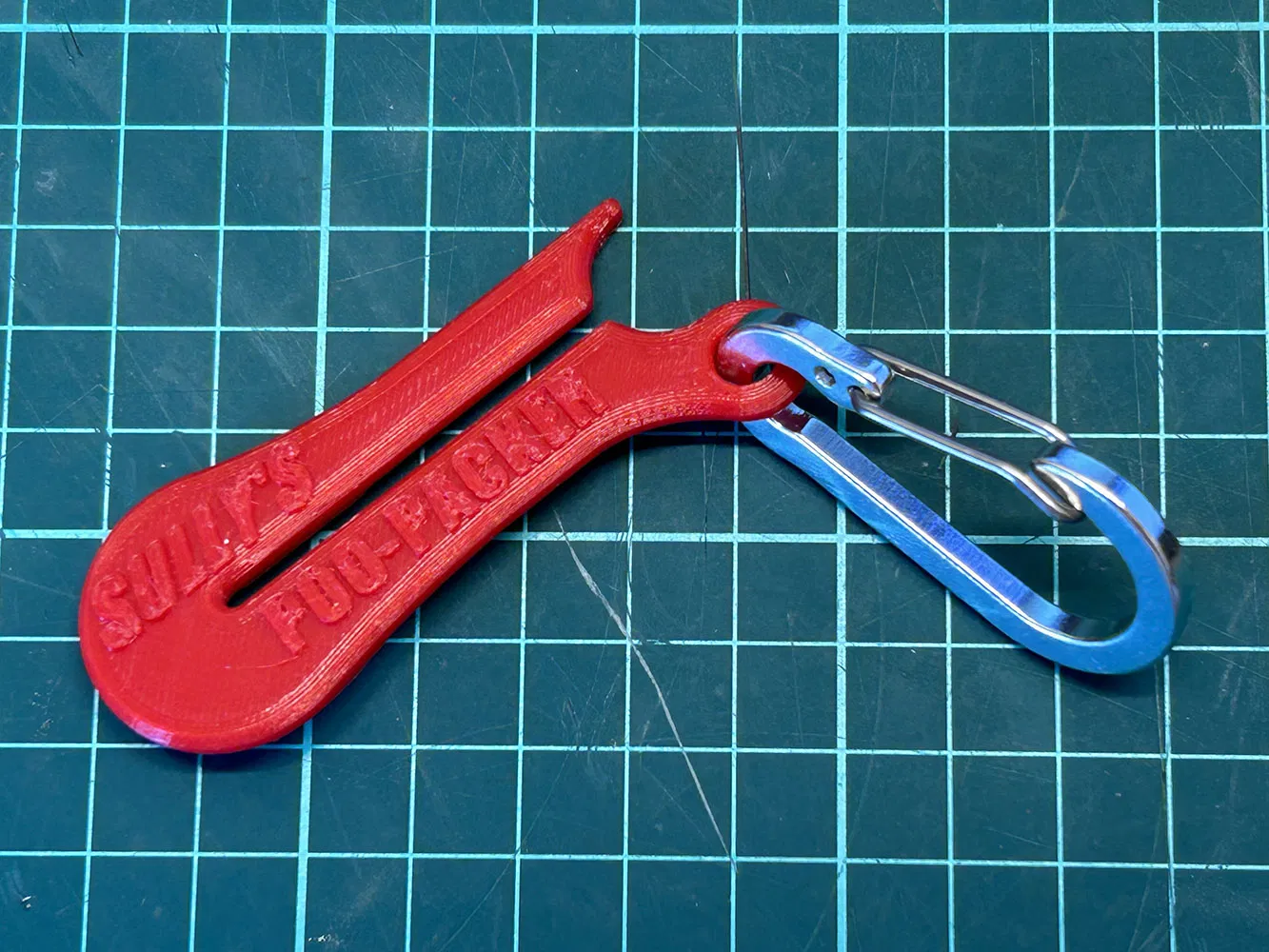 Được làm từ PETG nên nó chống nước, chống UV và linh hoạt. Nó có một lỗ 4mm để gắn móc khóa mini hoặc vòng chìa khóa thông thường. Kẹp nó vào cho đến khi bạn có thể vứt đi và rảnh tay. In trong khoảng 40 phút trên máy Mk3S+