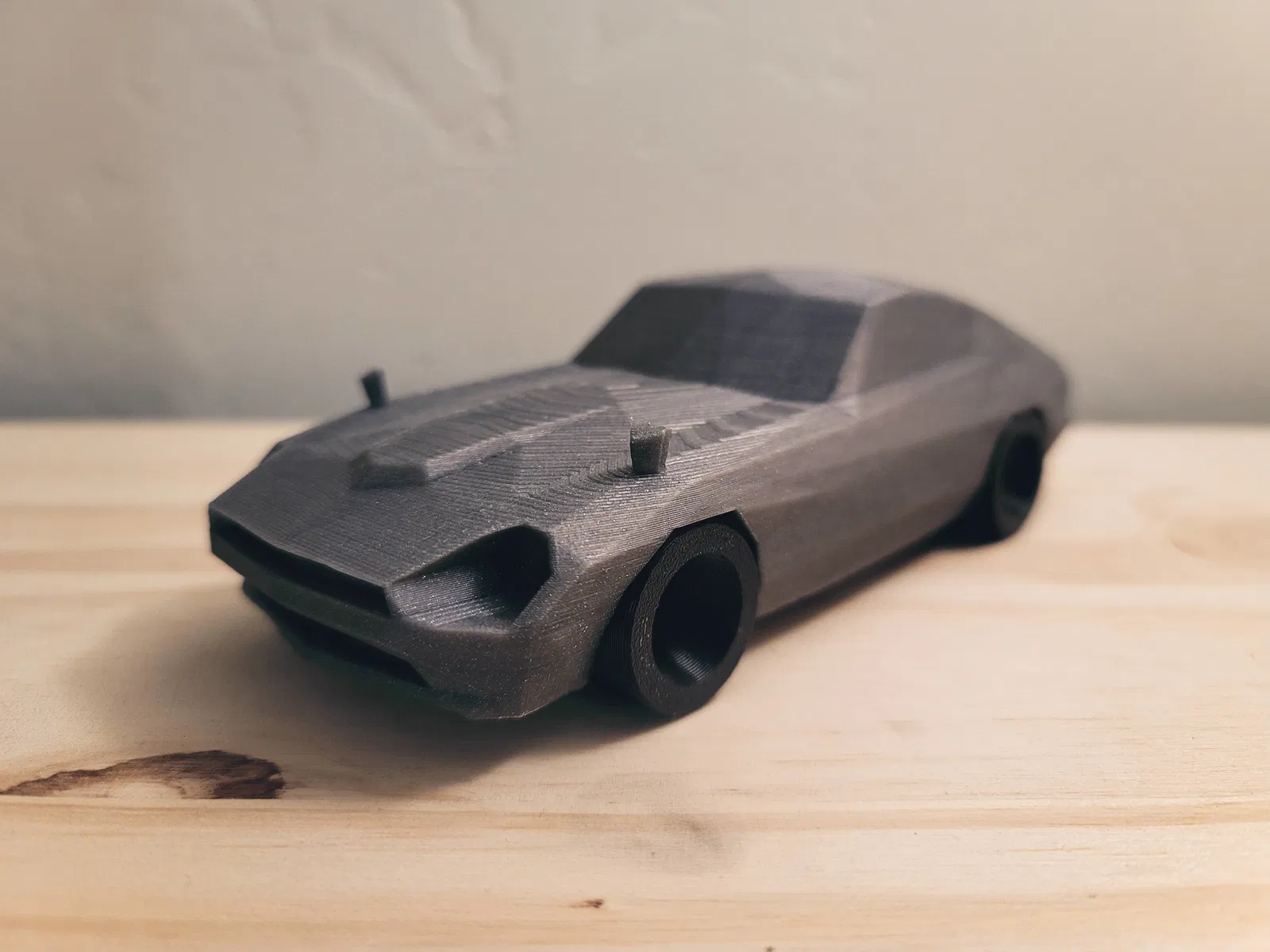 Phiên bản làm lại của mẫu Datsun 240Z low poly, được tối ưu hóa cho việc in ấn, chi tiết được làm sạch sẽ và không cần supports. Thiết kế phù hợp với bánh xe có hoặc không có vòng bi 608.