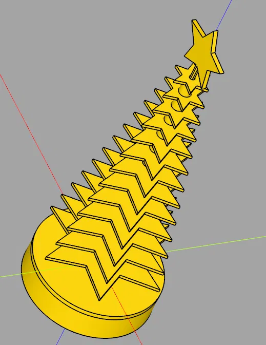 Hình dạng thân cây bát giác in dễ dàng, với ngôi sao gắn ở trên cùng.