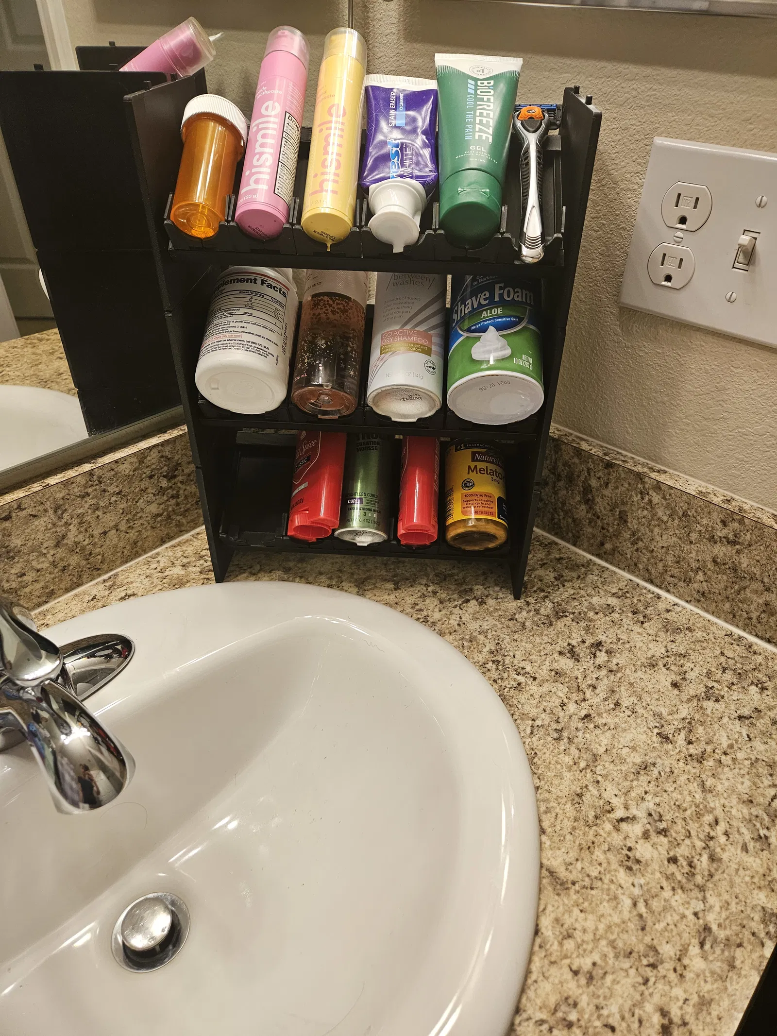 Bộ Tổ Chức Nhà Tắm Dạng Module, khoảnh khắc eureka của tôi trong cuộc chiến bất tận chống lại sự hỗn loạn trên bồn rửa mặt phòng tắm! Ra đời từ vực sâu của sự tuyệt vọng do bừa bộn gây ra, kiệt tác in 3D này là minh chứng cho sự ngăn nắp và hài hòa. Sự tài tình của nó nằm ở tính module - mỗi phân đoạn là một nơi trú ẩn có thể tháo rời để tổ chức, được tùy chỉnh cho sự đa dạng kỳ lạ của những người quan trọng bên cạnh chúng ta. Gắn vào, tháo ra và sắp xếp lại tùy thích; từ các tòa tháp bàn chải đánh răng đến các mê cung lotion, hãy tùy chỉnh theo ý muốn của bạn. Nó không chỉ là một bộ tổ chức; nó là người giữ gìn hòa bình, người hòa giải và chuyên gia tư vấn mối quan hệ, tất cả được gói gọn trong một. Nói lời tạm biệt với những ngày phải di chuyển qua những đống đồ dùng vệ sinh cá nhân nguy hiểm. Chào mừng đến với một thế giới nơi mọi chai lọ, bàn chải và kem dưỡng đều có không gian riêng đáng tôn trọng, để bồn rửa mặt của bạn thanh bình như một khu vườn Zen. Tiết kiệm những buổi sáng, sự tỉnh táo và các mối quan hệ, từng phòng tắm một!