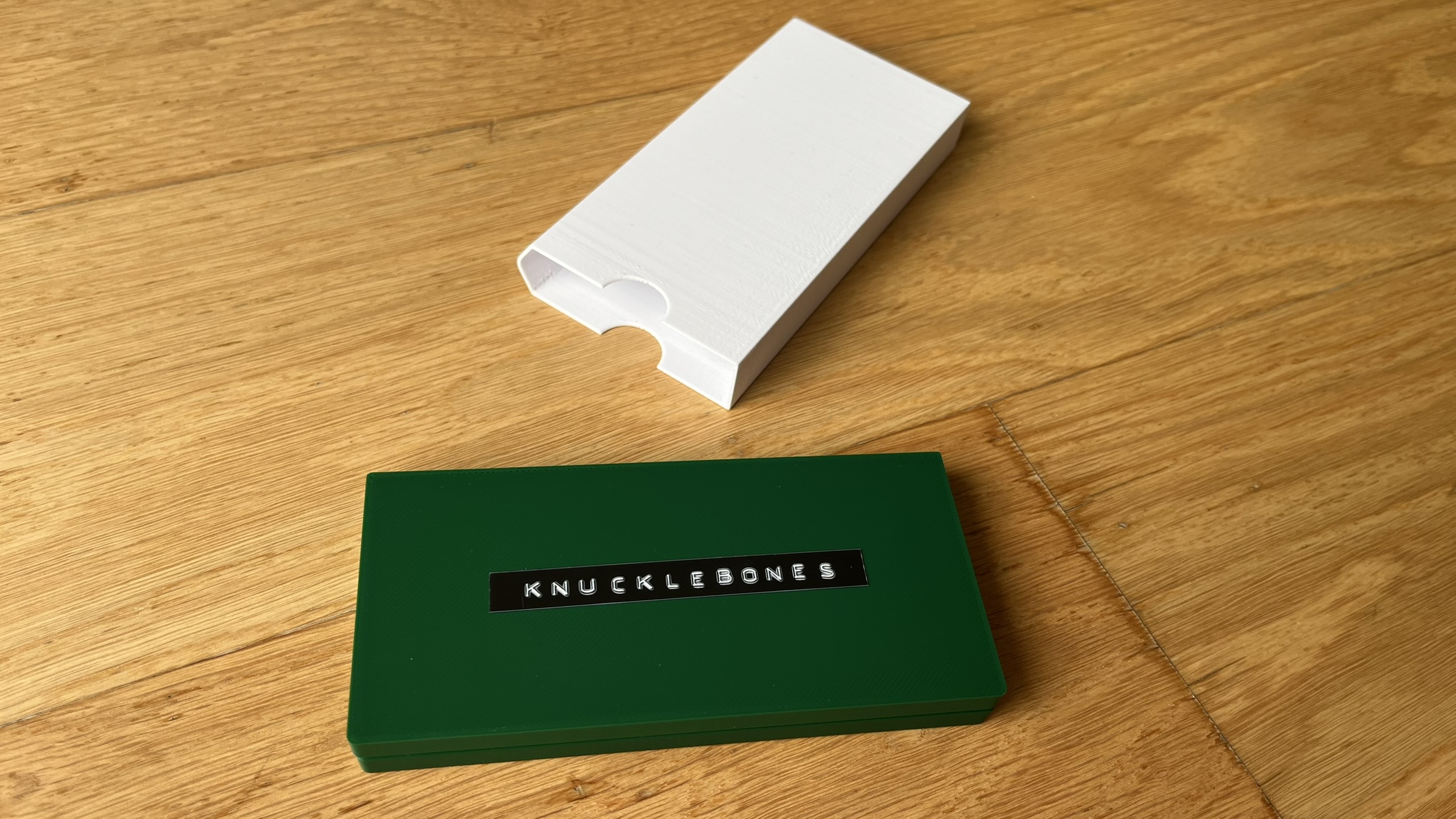 Đây là phiên bản của tôi về bàn cờ cho trò chơi xúc xắc Knucklebones trong Cult of the Lamb. Kích thước du lịch và gập đôi để vận chuyển dễ dàng! Có các khe cắm nam châm tùy chọn và một vỏ bọc in để ngăn xúc xắc của bạn bị mất trong túi.