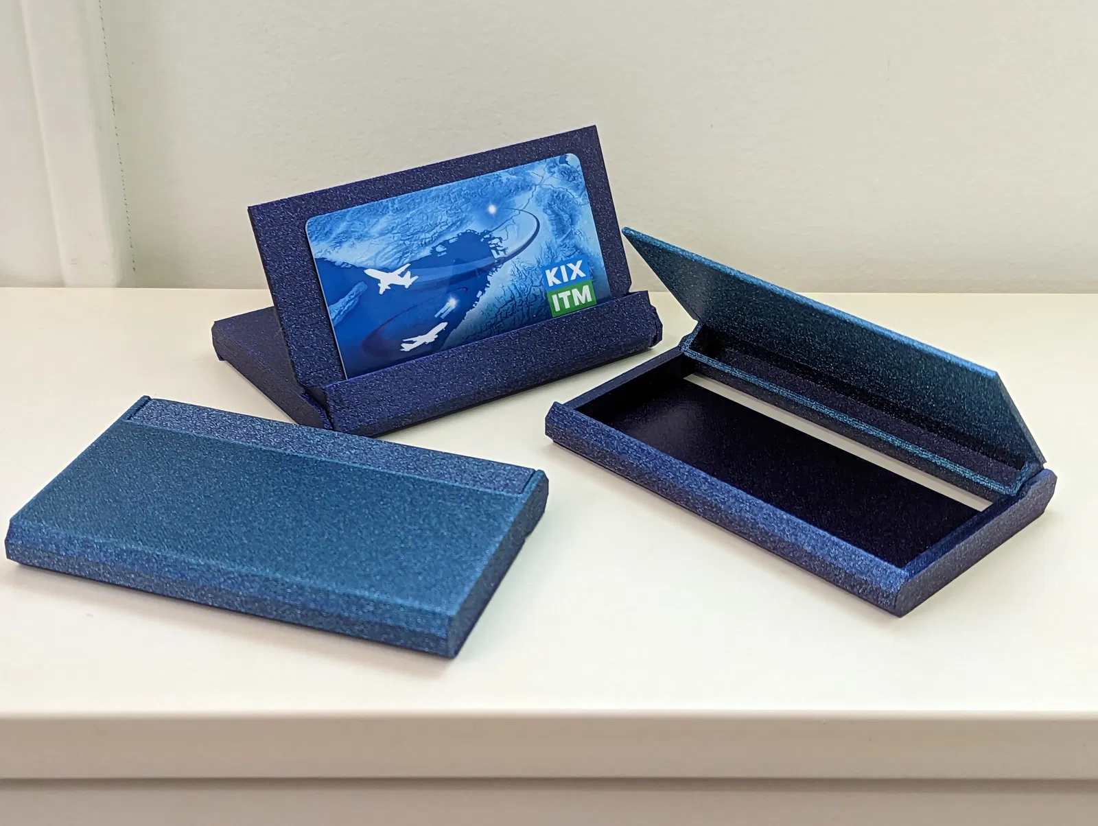 Hộp đựng và đế đứng danh thiếp in-place, không cần support. Đặt nó trên bàn sự kiện của bạn, chia sẻ danh thiếp! Có thể mang theo bỏ túi hàng ngày, đựng được cả size card Mỹ và Nhật. Khuyến khích dùng PETG.