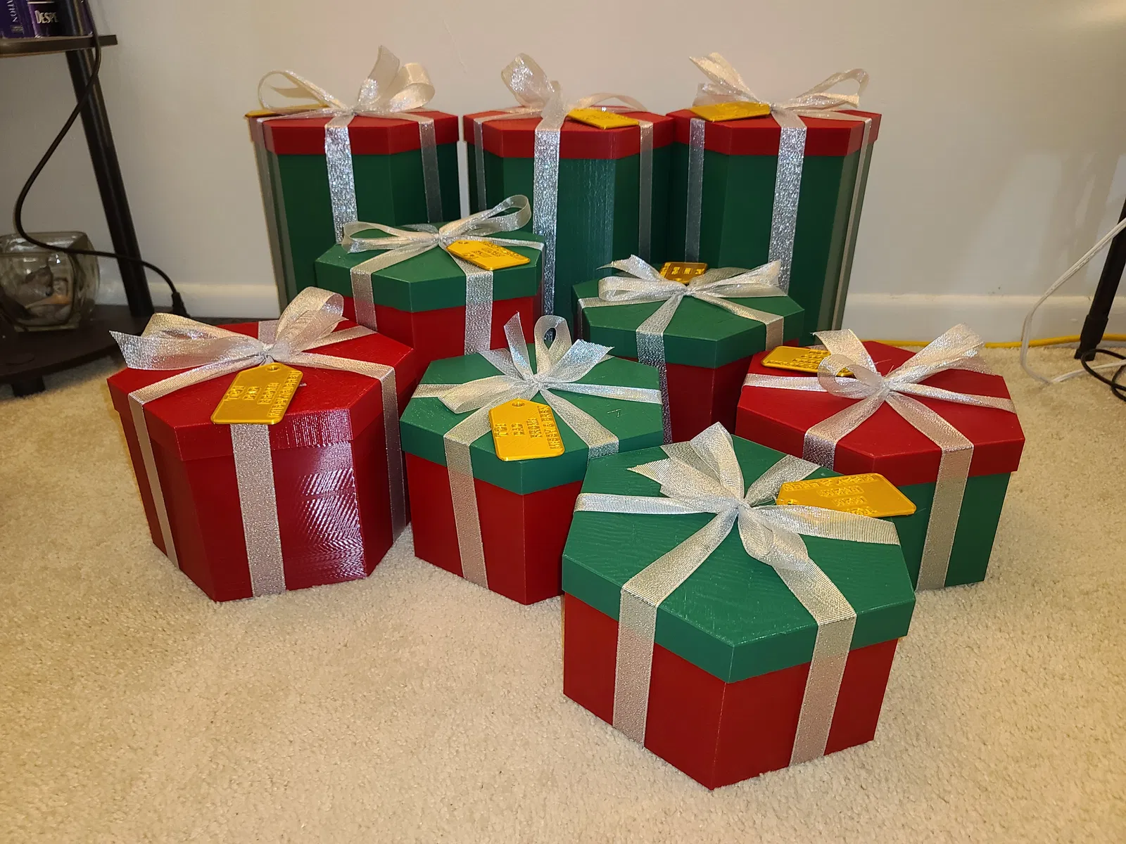 Mô hình hộp quà hình lục giác này hoàn hảo để đựng quà Giáng sinh hoặc bất kỳ dịp lễ nào. Có nhiều kích cỡ khác nhau, từ 1 đến 12 inch, và nắp có thể dùng chung cho tất cả các hộp. Thử in hai màu để thêm phần sinh động nhé!