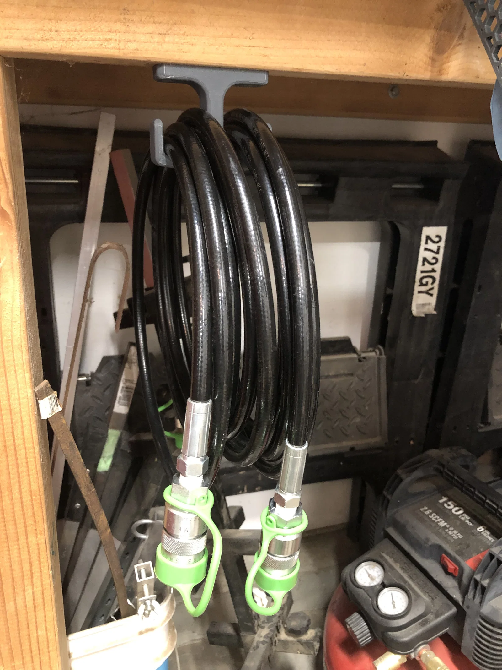Móc treo ống cho cả ống thủy lực Quickjack và các kẹp gắn vào tay cầm bơm thủy lực để cất giữ cáp AC và bộ điều khiển.