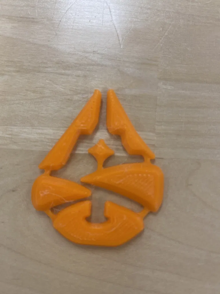 Huy hiệu này nên khớp với mấy cái khác, mà dạo này tui bận hơn lúc làm mấy cái kia, nên nói thiệt là kích cỡ có thể hơi khác chút. Nhưng tui luôn chỉnh lại kích cỡ lúc cắt lát (slicing) để nó khớp với mấy cái tui có sẵn. Tui không làm bản có lỗ vì cũng không có chỗ nào ngon để gắn cả, nhưng có bản có khoen tròn nha.