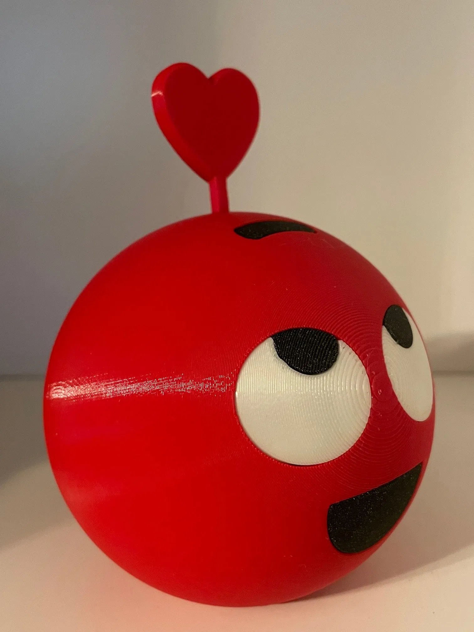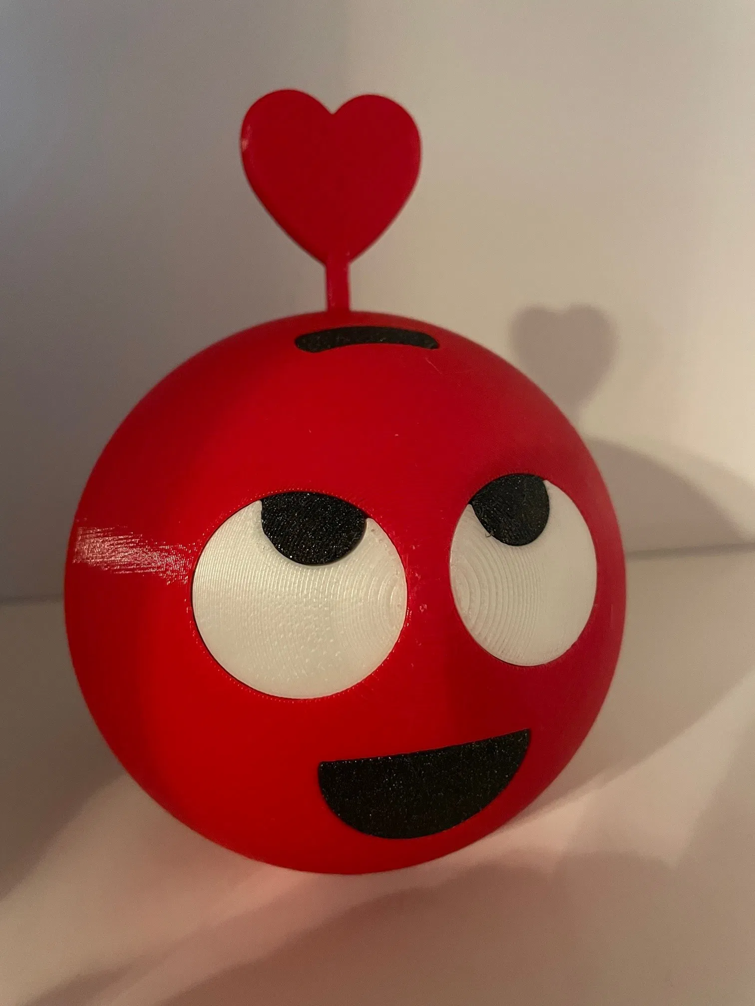 Mô hình Biểu tượng Cảm xúc Trái Tim #01, thiết kế bằng Fusion 360. Không cần support, chỉ cần dán lại các bộ phận. Các chi tiết được đặt tên theo màu in. In bằng PLA màu Lipstick Red, Vanilla White & Galaxy Black.