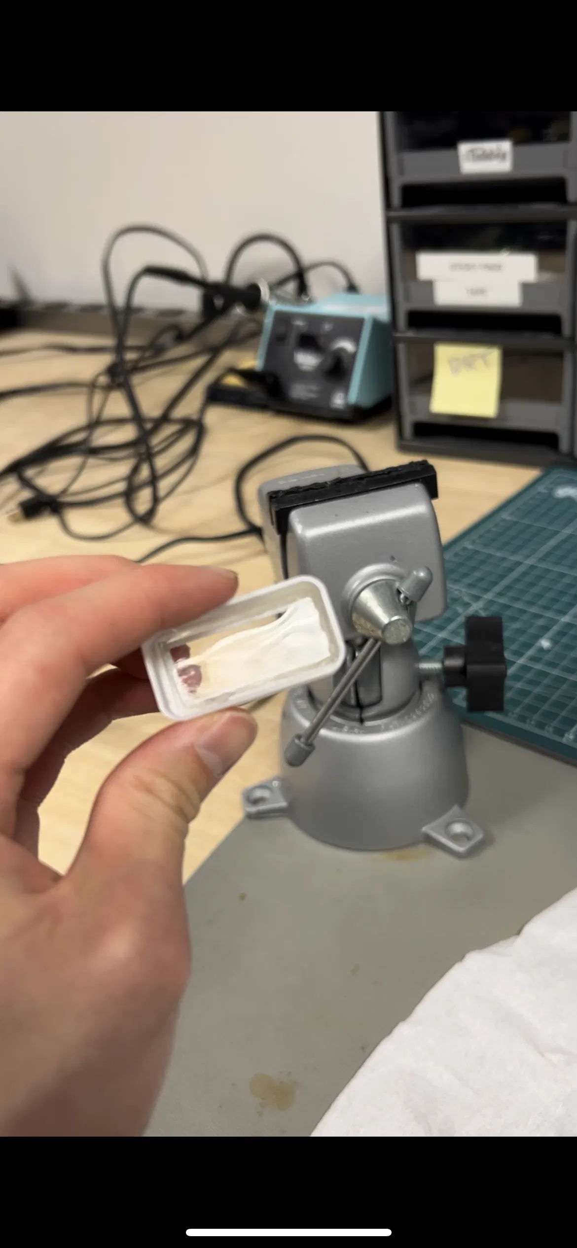 À, vụ cắt thì có dao nhiệt với mấy cái đồ nghề khác á. Nhưng mà tui thấy dùng súng bắn nhiệt, hơ nóng chỗ muốn cắt, rồi lấy kéo cắt, sau đó hơ nóng lại và ráng làm phẳng nó dưới mặt phẳng (như sách nè).