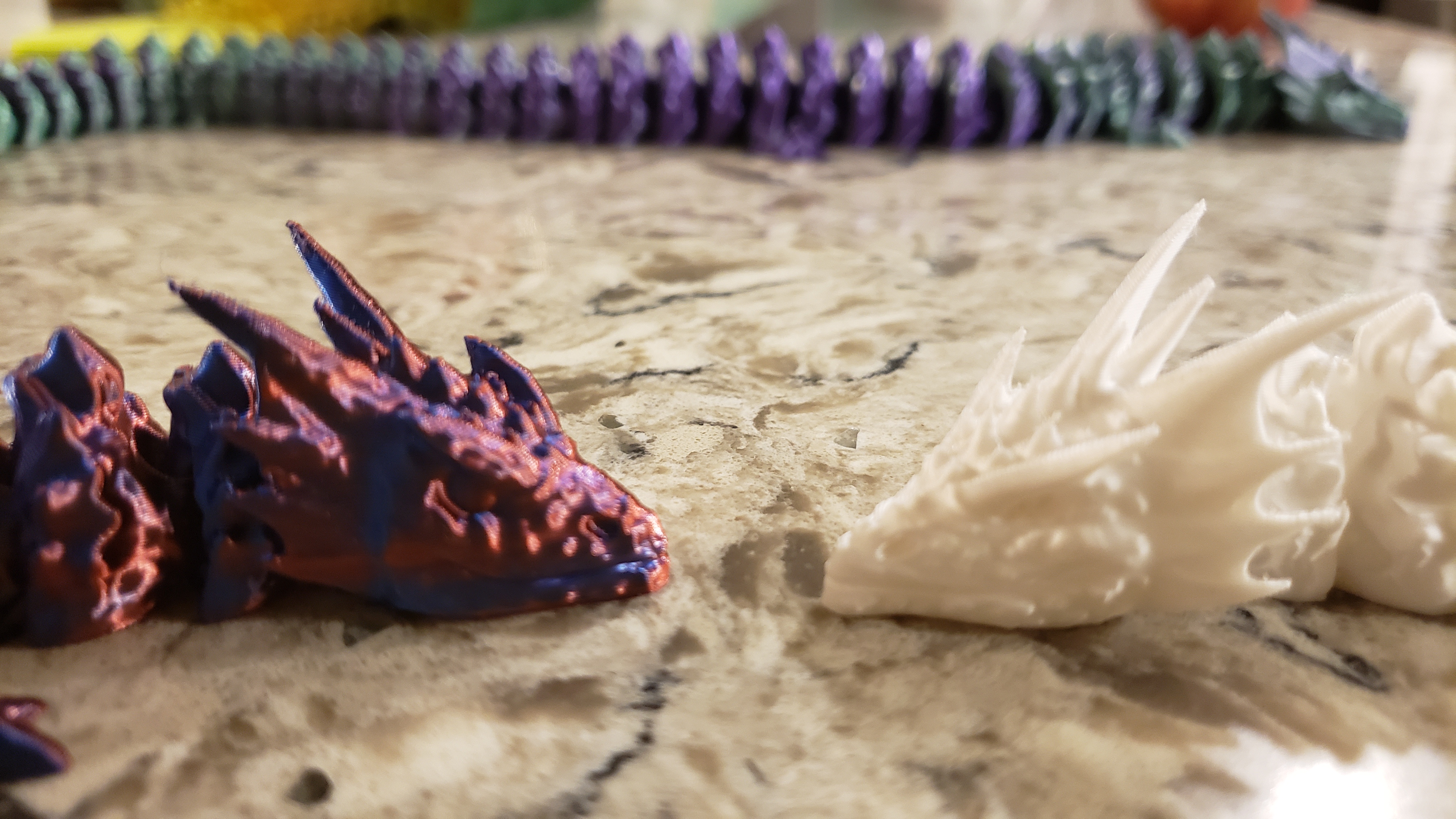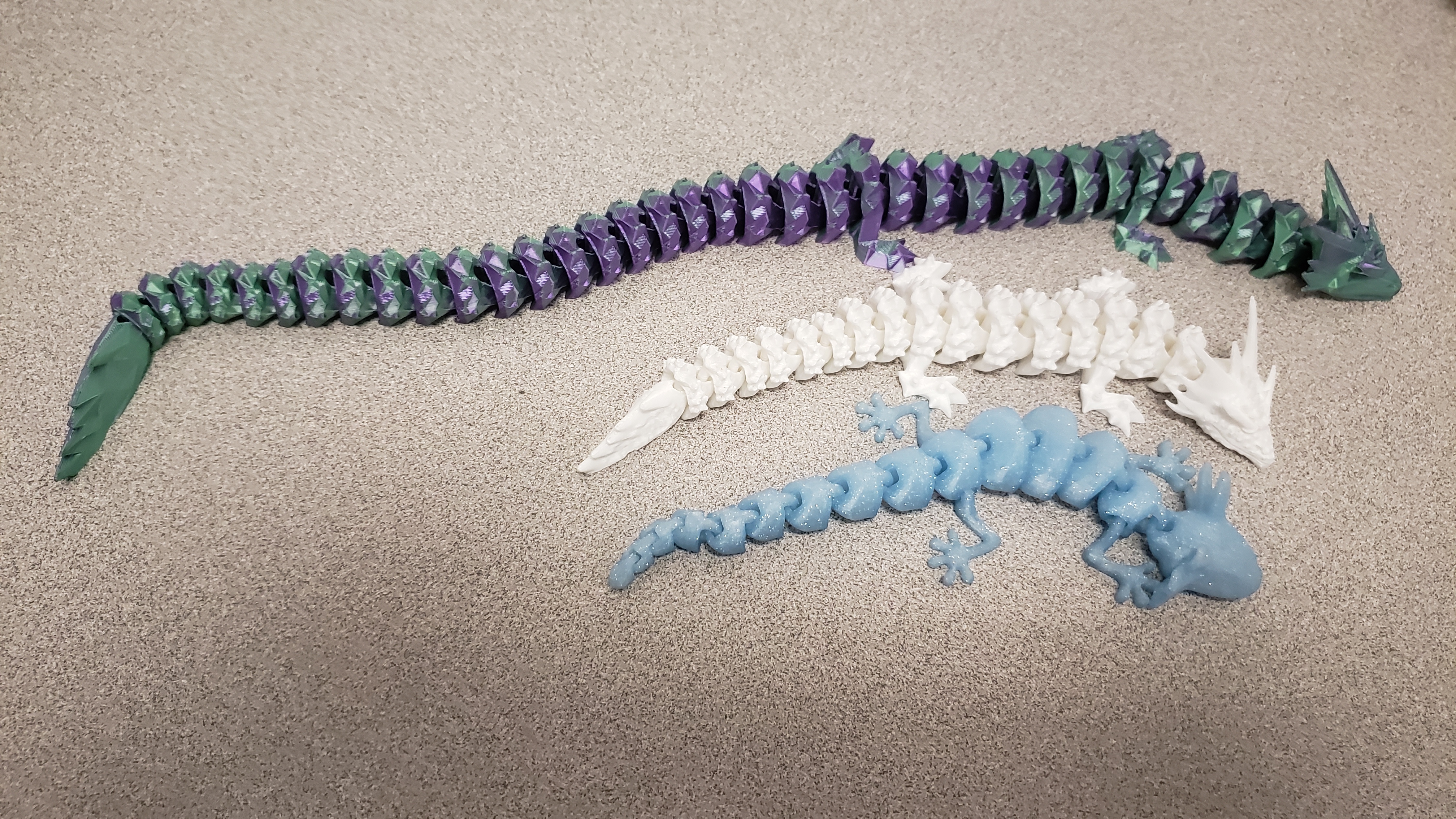 Bé Rồng Dạ Xoa mới nhất sẽ luôn được đăng trong thư mục “CURRENT”. Có phiên bản Cuộn tròn và phiên bản Thẳng. Ảnh của phiên bản này được hiển thị bằng nhựa in Hello3D màu đỏ và xanh.