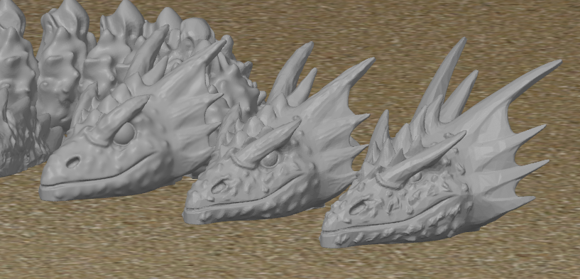 Beta_0.2 Làm lại đầu để trông giống phiên bản thiếu niên của rồng. Rút ngắn chiều dài, mở rộng hàm, rút ngắn tất cả các sừng và gờ, phóng to mắt làm mềm các chỗ phồng/kết cấu và rút ngắn các diềm. Đuôi ngắn lại và hẹp lại. Các trụ cong của các đốt thân. Đạt tới 103x82. Đang cố gắng giảm xuống dưới 100 cho máy in của trẻ em.