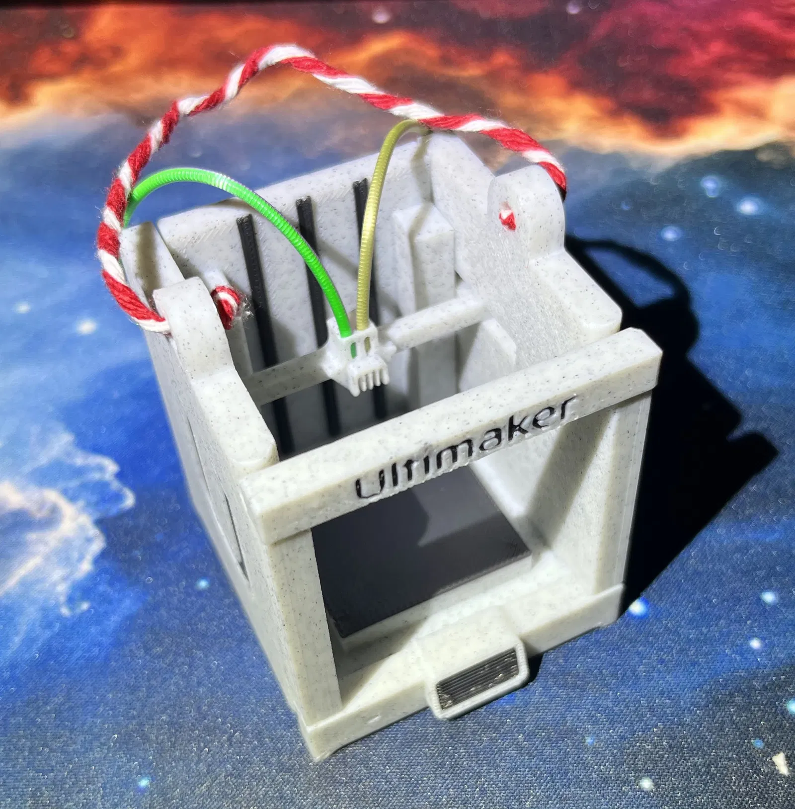 Xin chào mừng với Móc Khóa Máy In Ultimaker Gấp Gọn! Móc khóa in một lần này không chỉ dễ in mà còn siêu vui khi lắp ráp và treo lên cây thông Noel của bạn. Dùng một đoạn dây tóc 1.75mm để hoàn thiện vẻ ngoài, nối cuộn dây tóc phía sau với đầu nóng.