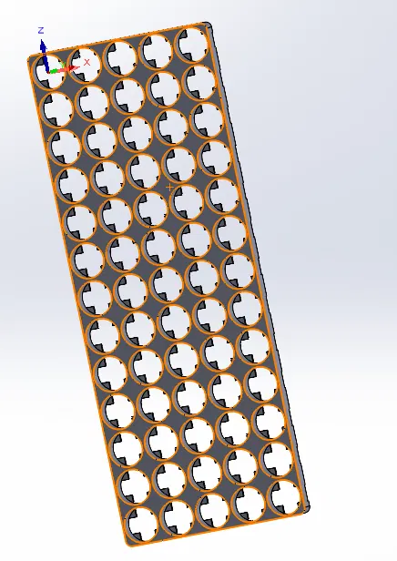 Hộp đựng pin 18650 với 13 cell x 5, dùng để hàn các dải magiê cho pin. Thiết kế khung chắc chắn, cứng cáp cho pin định dạng lớn. Tường hộp dày 0.8mm, khoảng cách 1.4mm.