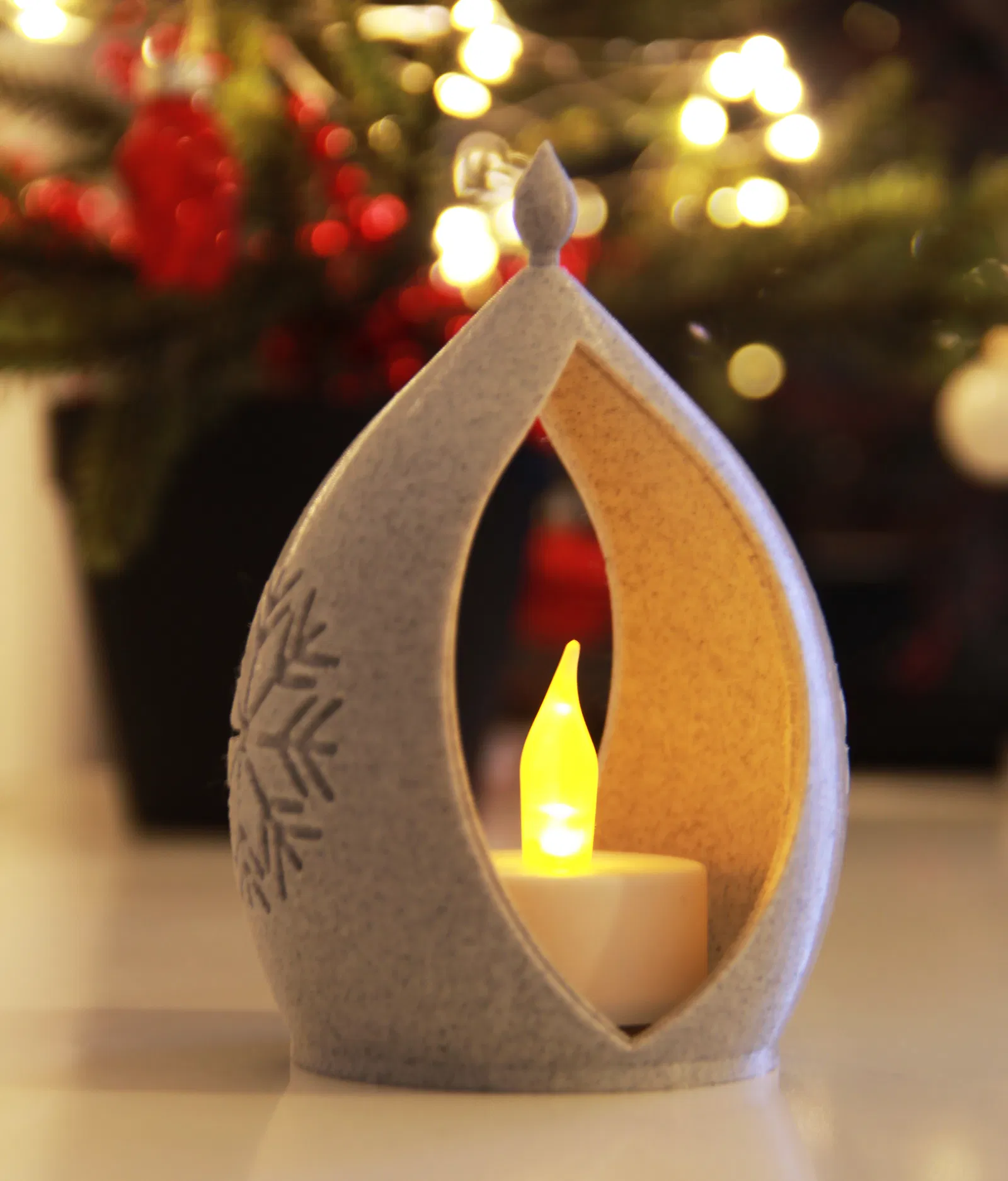 Đèn lồng Giáng sinh này gồm hai phần, được in liền mạch. Phần bên trong có thể xoay được để bạn có thể đặt nến LED vào bên trong đèn lồng. Các bông tuyết được dập nổi theo cách cho phép ánh sáng từ nến chiếu xuyên qua. Tính năng "adaptive layer height" (chiều cao lớp thích ứng) trong PrusaSlicer đã được sử dụng để đạt được bản in sạch đẹp và không cần hỗ trợ.