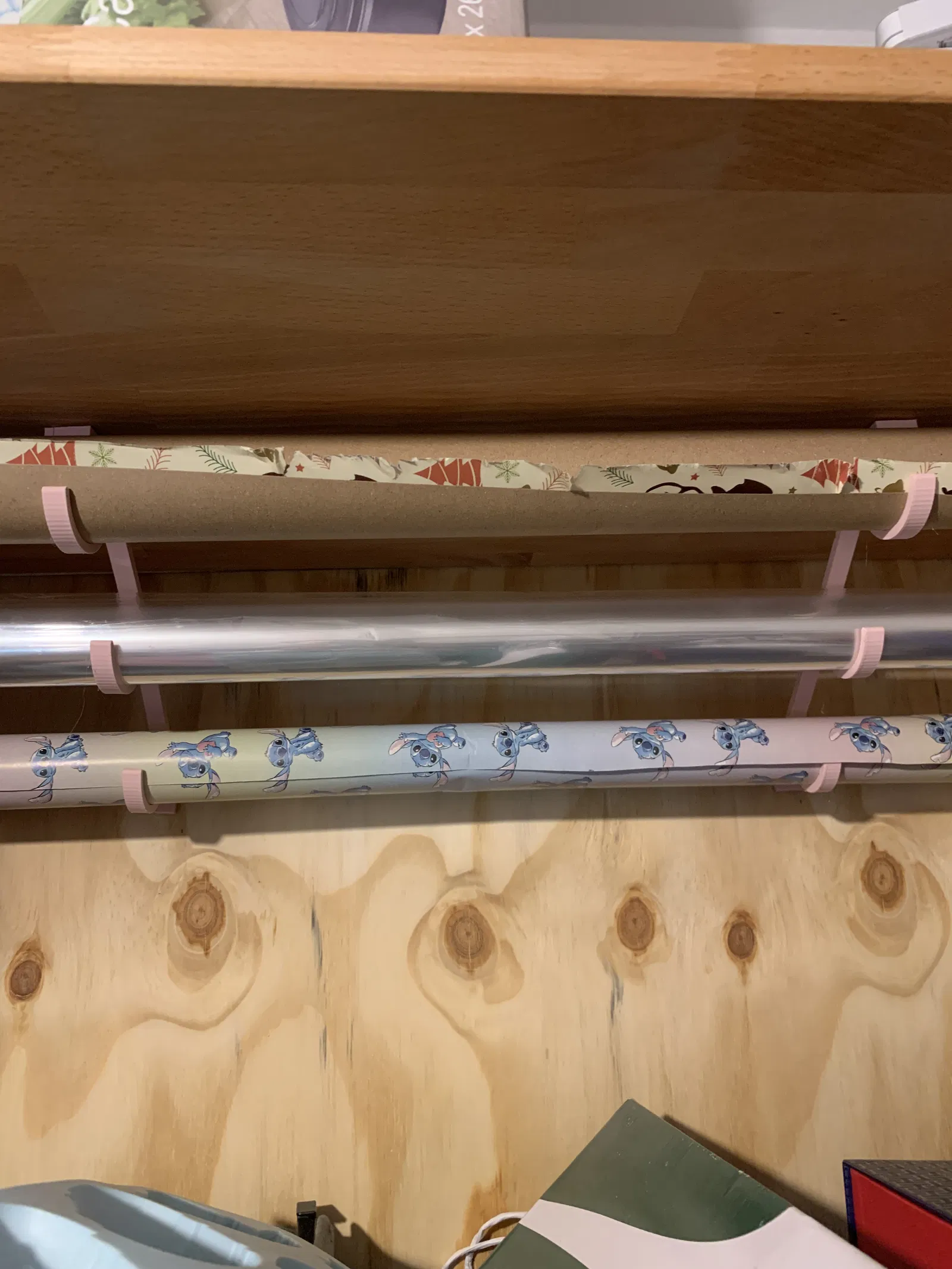 Một cách để treo giấy gói quà của bạn trong tủ quần áo. Sản phẩm này giúp bạn sắp xếp gọn gàng giấy gói quà, tiết kiệm không gian và dễ dàng tìm thấy khi cần sử dụng, giữ cho giấy luôn phẳng phiu và không bị nhăn.