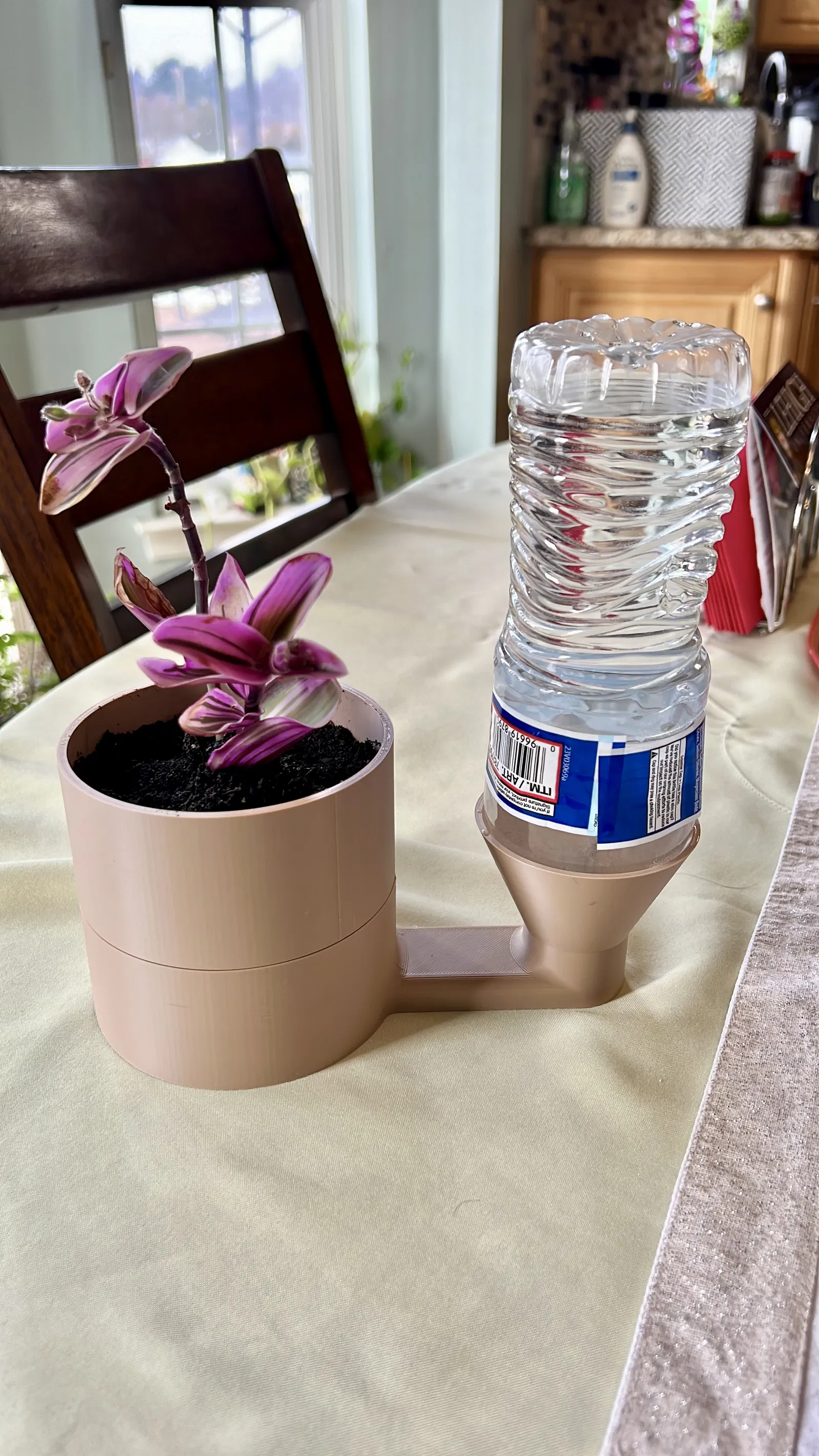 Chậu tự tưới nước thông minh cho cây nhỏ, bạn có thể để trên bàn làm việc hoặc bệ cửa sổ. Thiết kế độc đáo giúp cây luôn đủ ẩm bằng cách sử dụng chai nước làm bình chứa. In ấn dễ dàng trên Ender 3 V2, không cần support.