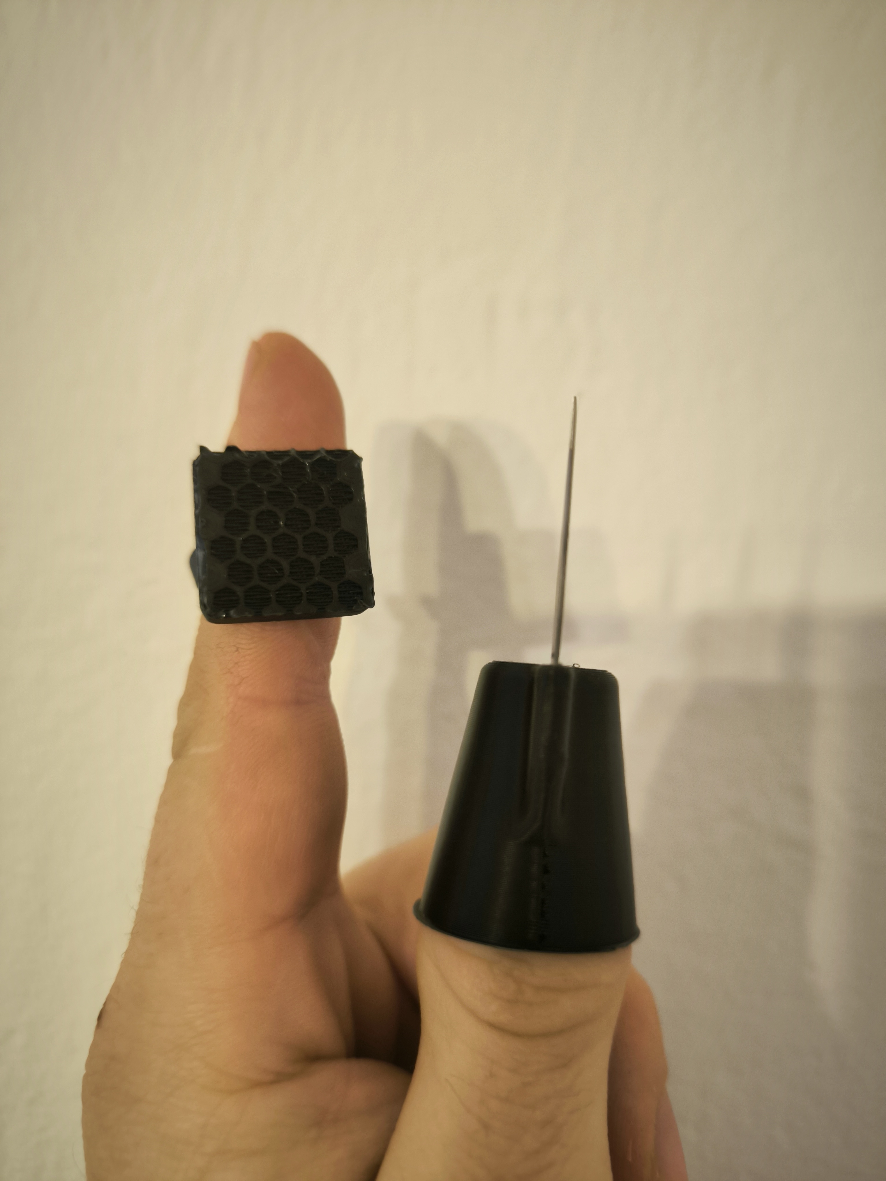 Adapter đeo tay vô mấy ngón tay xài với dao rọc giấy, bạn có thể dễ dàng cắt mọi thứ hoặc làm vườn. In thêm cái vỏ bọc để xài ngon hơn nha. Chúc bạn vui.
