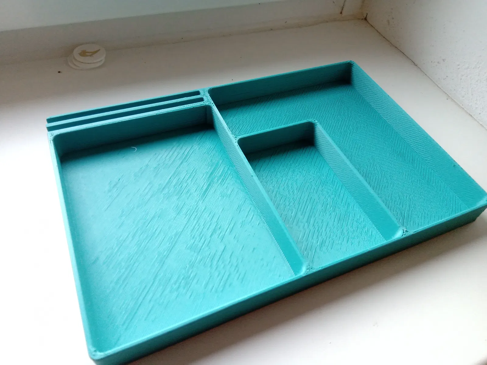 Bạn cần một khay đựng đồ EDC lớn hơn để chứa ví, chìa khóa và thẻ KeyCard? Khay này còn có thêm một ngăn nhỏ để dựng giấy tờ hoặc thư từ nữa đó!