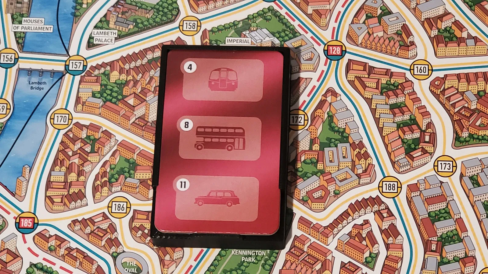 Giúp bạn sắp xếp gọn gàng mấy cái token Taxi, Bus, và Metro của mỗi người chơi khi chơi game Scotland Yard. In ra 1 cái cho mỗi người chơi nha.