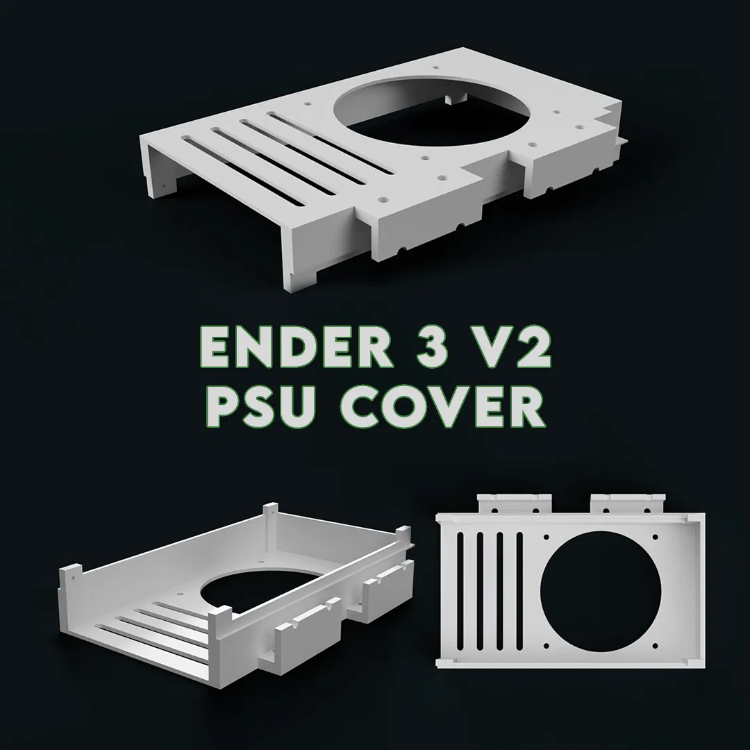 Nắp nguồn cho Ender 3 V2, hỗ trợ quạt Noctua 14mm NF-A9x14 mỏng. Giúp giảm tiếng ồn và có chỗ giữ dây cáp phía sau. Khuyên dùng sợi nhựa chịu nhiệt cao, nhất là khi in trong lồng kính.