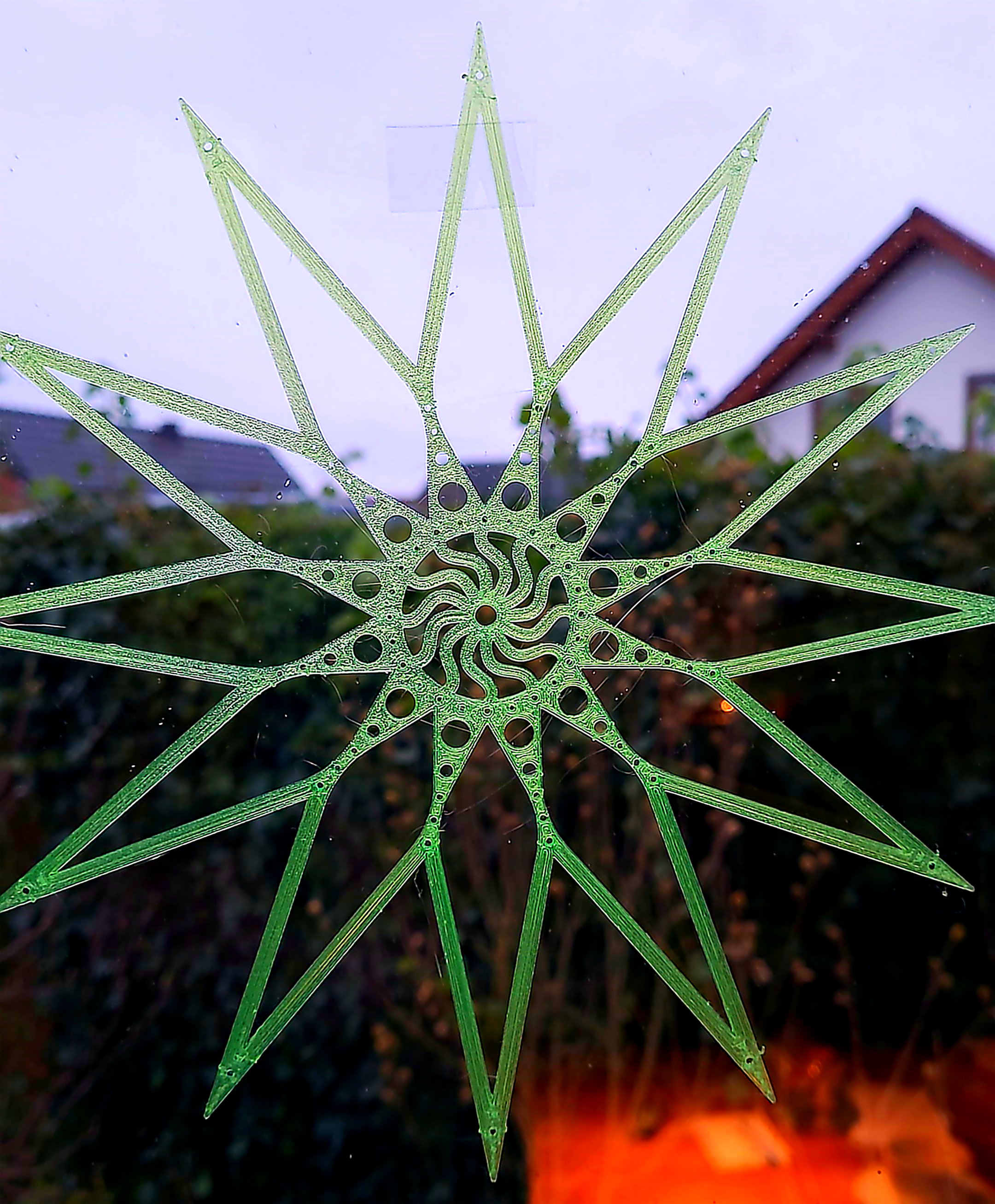 Trang trí Giáng sinh hình ngôi sao, chỉ tốn 1.4g filament. Có thể điều chỉnh độ dày cho phù hợp với filament trong mờ. Phiên bản cuối có xoắn và không xoắn để bạn lựa chọn.
