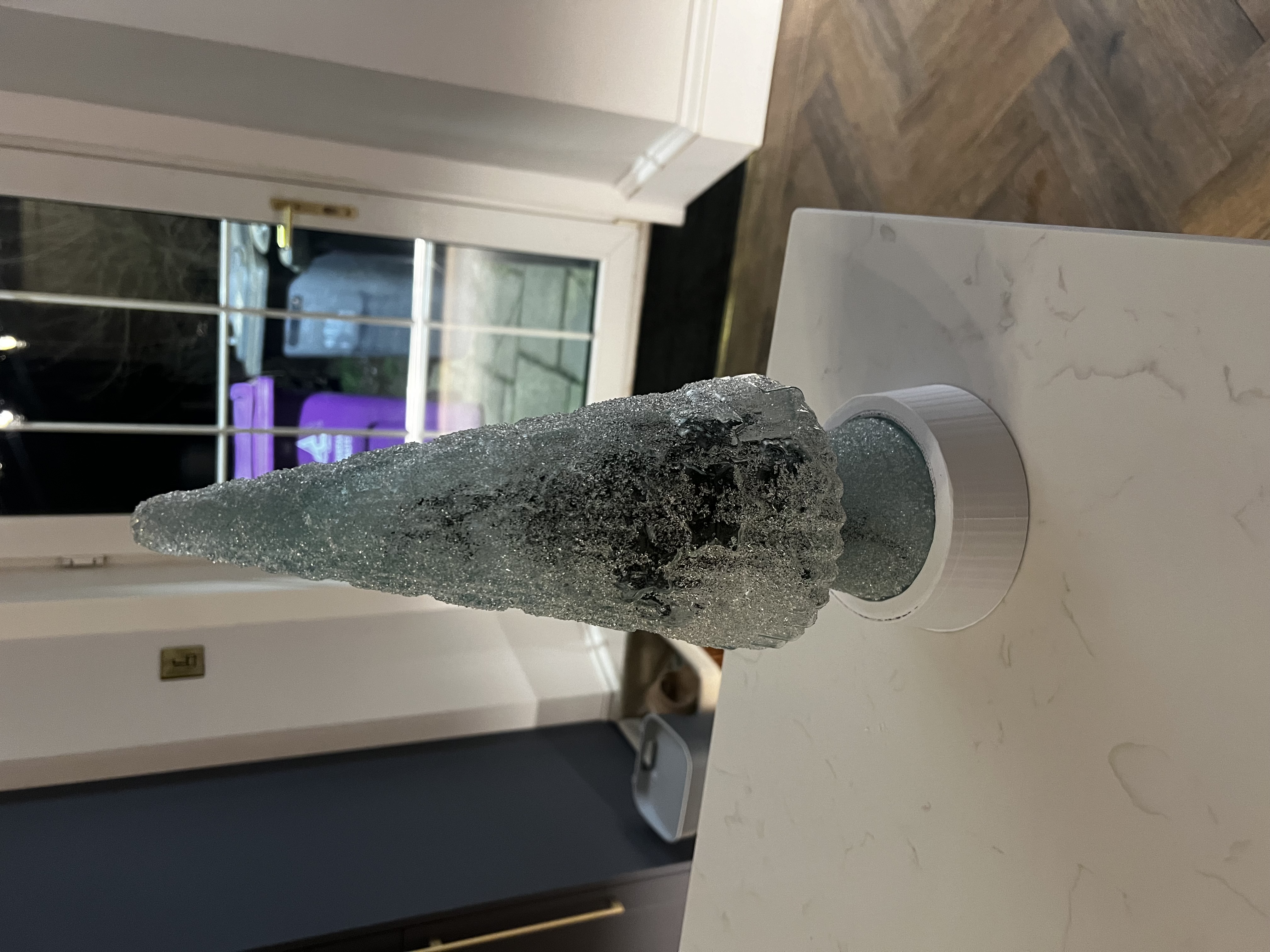 Thiết kế hai mẫu chân đế để giấu pin đèn cho cây thông Noel thủy tinh. Chân đế nhỏ đựng vừa pin 89mm, chân đế lớn đựng vừa pin 100mm. Kích thước pin là 70mm x 79mm, phù hợp giấu gọn gàng.