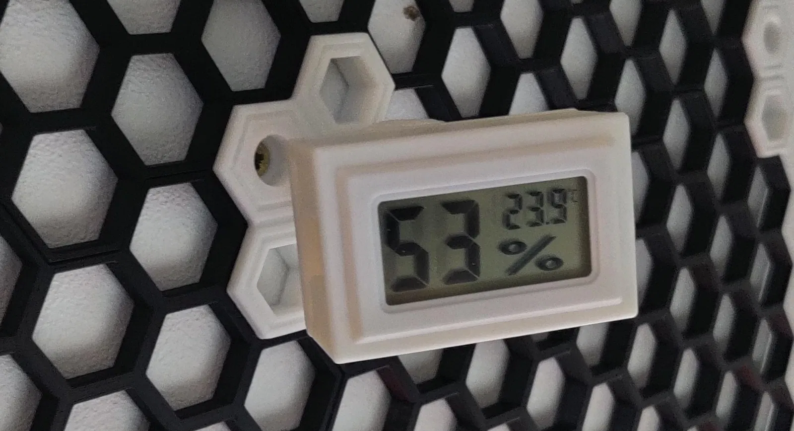 Mấy cái Honeycomb Storage Wall nhà tui thì đặt bên hông, chứ hổng phải phía trước. Thành ra, không có đọc được cái cảm biến nhiệt độ với độ ẩm liền được.