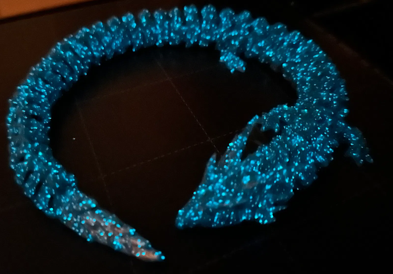 Tới lúc bé nhà mình đi ngủ thì trời đã tối thui rồi, con rồng cần tia UV để phát sáng. Cái đèn này được nối với đèn ngủ, nên khi đèn ngủ bật thì rồng cũng được sạc theo, tới lúc hẹn giờ tắt thì rồng tự phát sáng trong đêm luôn đó nha…