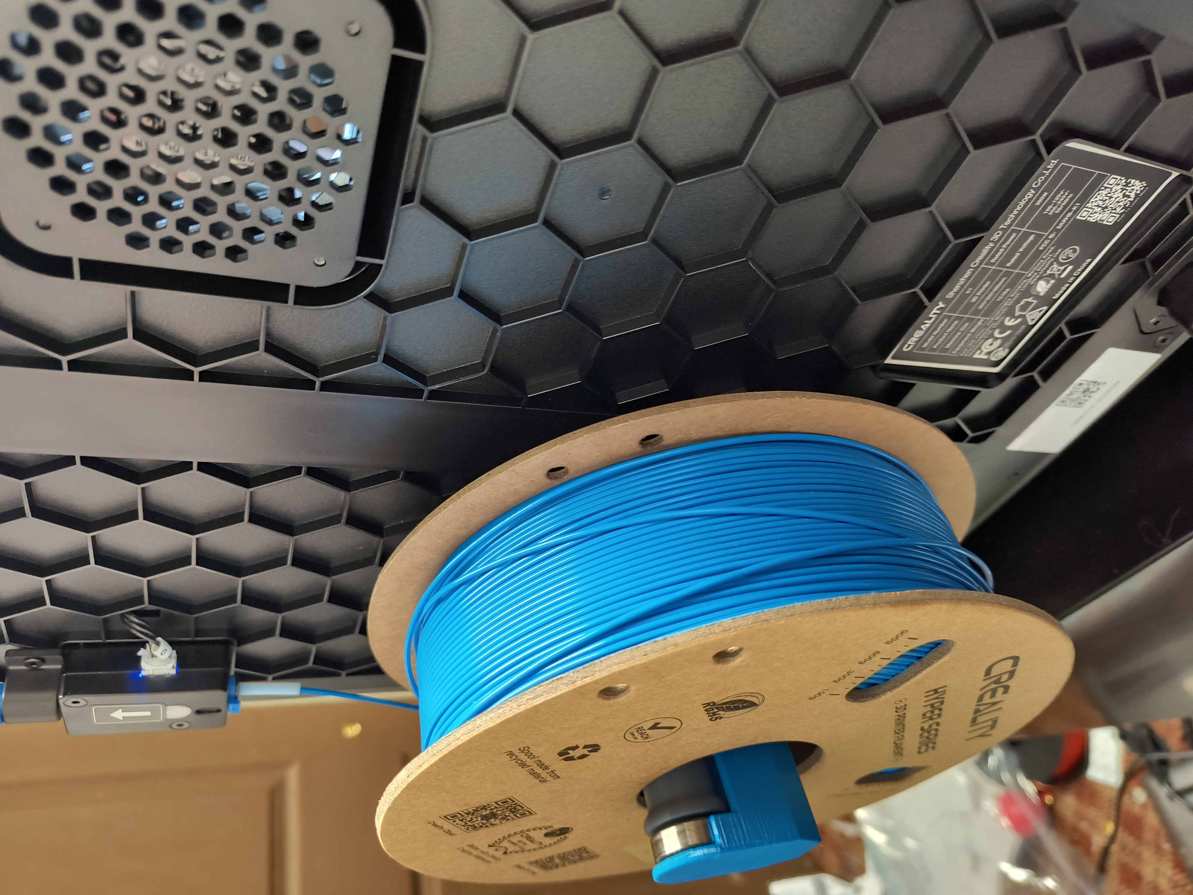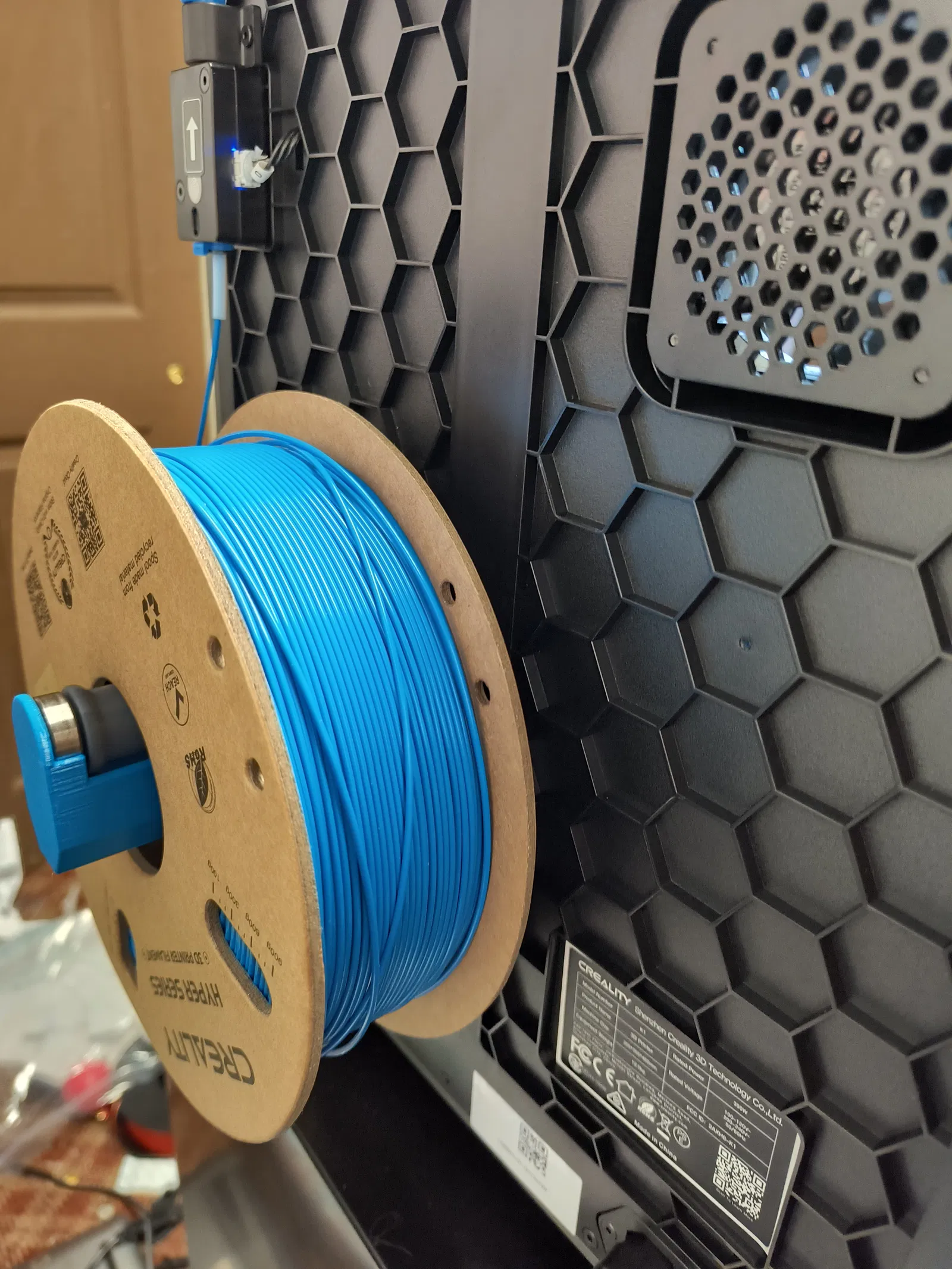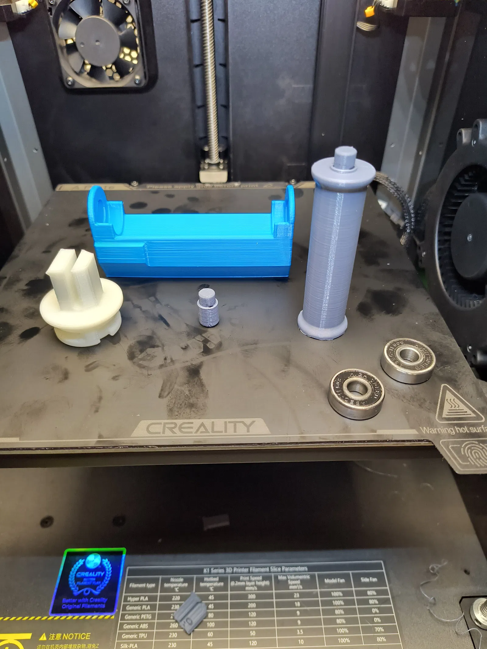 Hộp đựng cuộn dây cho Creality K1/ K1 max. Chỉ cần các bộ phận in 3D và 2 vòng bi ván trượt là xài được. Thiết kế thấp để thẳng hàng với cảm biến runout.