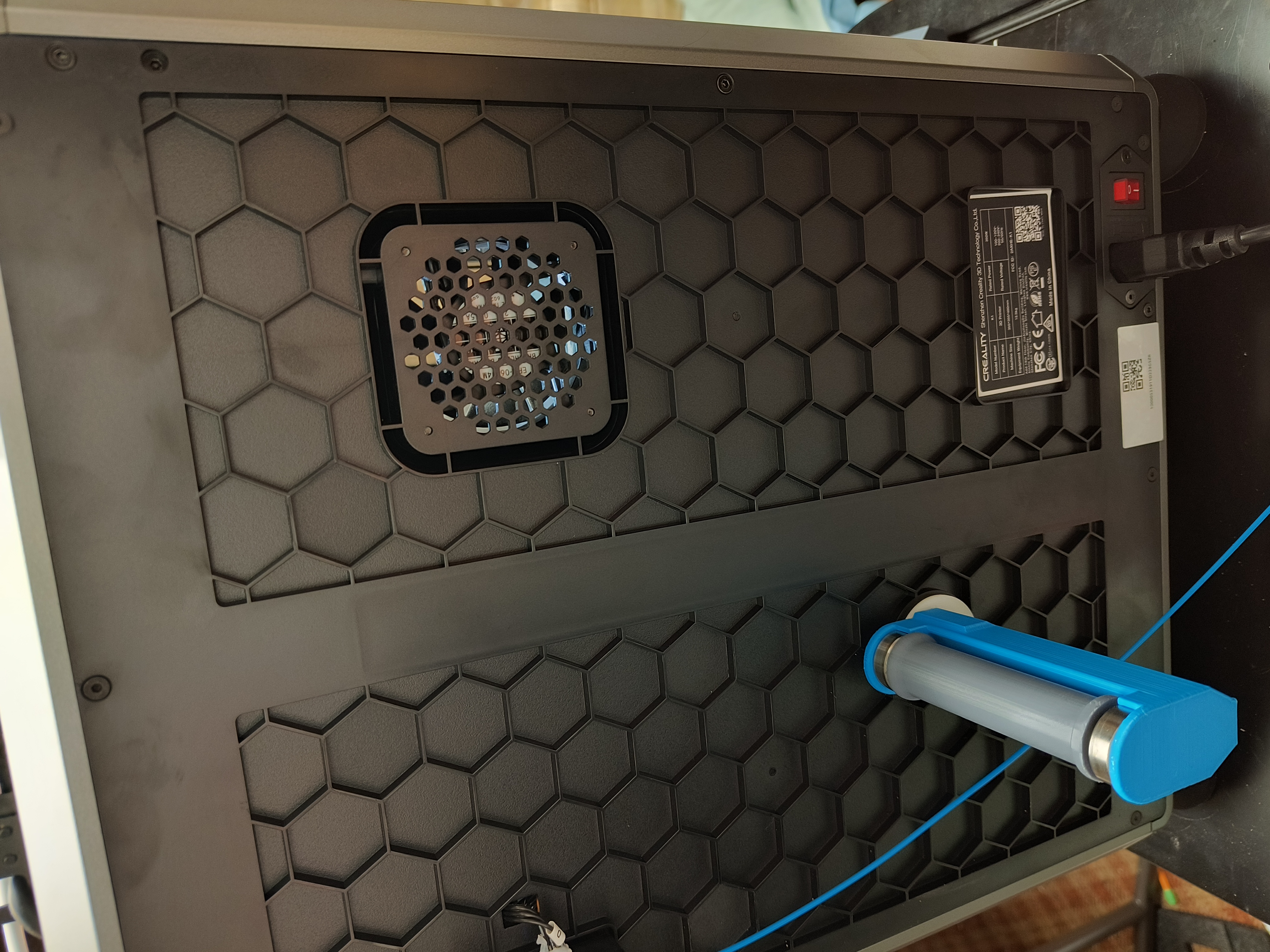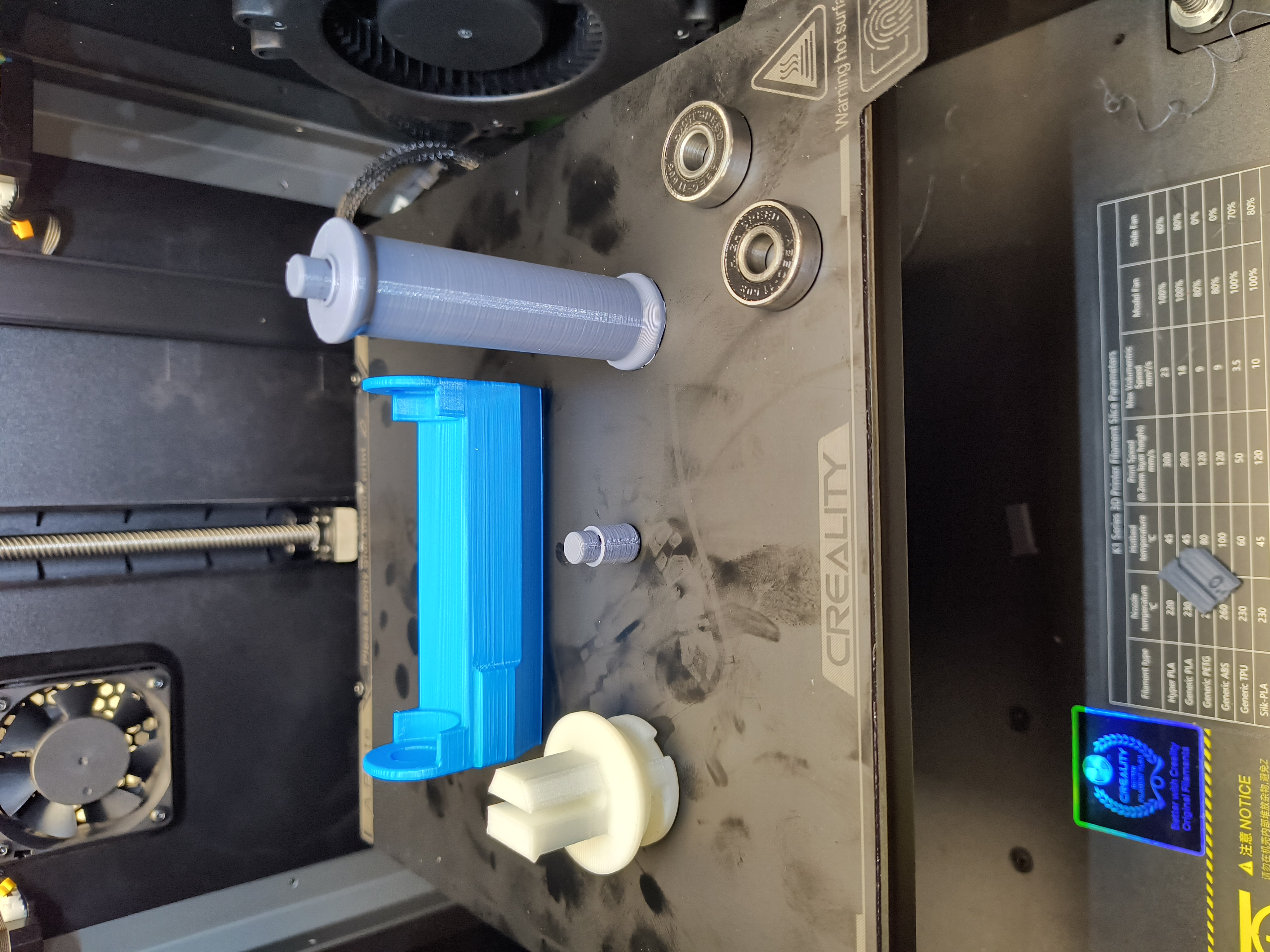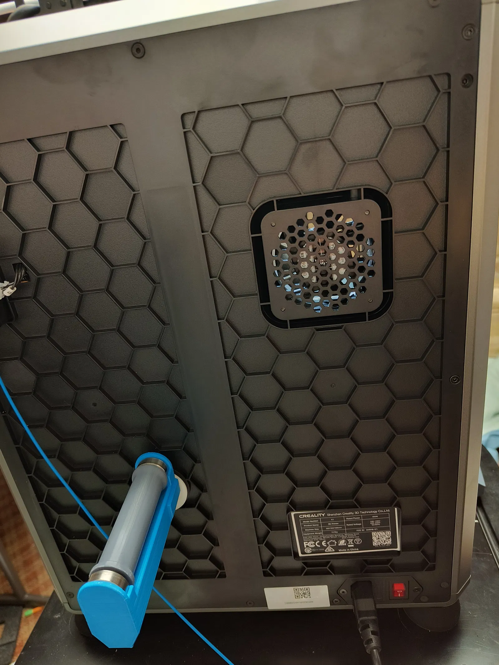 Hộp đựng cuộn dây cho Creality K1/ K1 max. Chỉ cần các bộ phận in 3D và 2 vòng bi ván trượt là xài được. Thiết kế thấp để thẳng hàng với cảm biến runout.