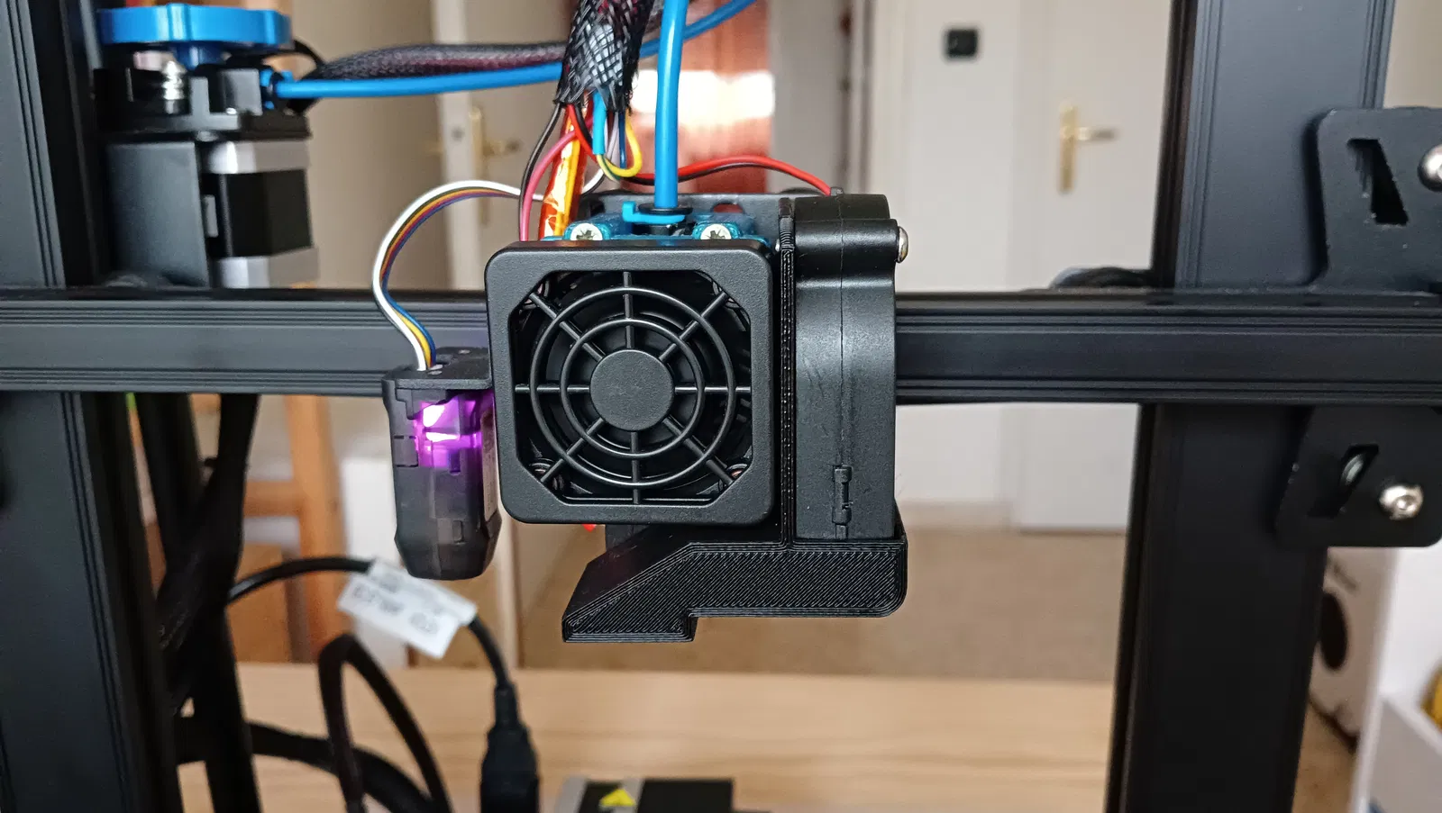 Tao kiếm hoài không thấy cái ống dẫn quạt 5015 nào đơn giản, dễ làm cho cái Ender 3 V2 Neo của tao. Tao có cái đế quạt hotend ngon rồi, mà muốn cái quạt làm mát nó mạnh hơn nữa. Cái ống này nó không vướng víu gì tới dây heat cartridge hết, vì cái ống nó nằm phía trước và bên phải. Lắp đặt dễ lắm, chỉ cần tháo cái đế cũ ra rồi gắn cái đế của tao vô thôi. Nhớ xài quạt 5015 loại tốt nha. Trông ngon lắm với cái đế quạt EZ tối giản này: In bằng PLA+ nha, xài support như hình trong Cura.