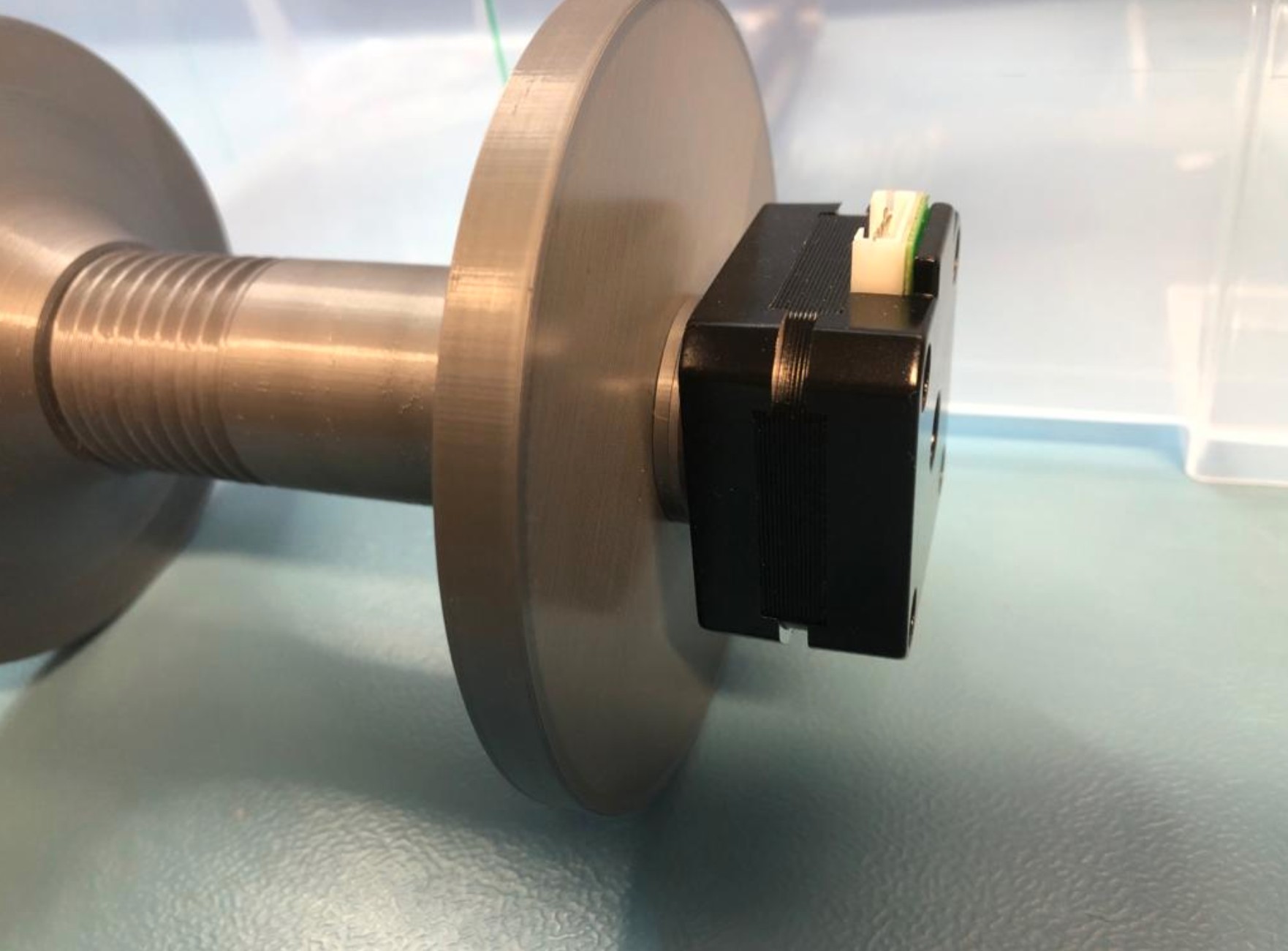 Ngày nay, các cuộn dây mới hơn mỏng hơn: khoảng 7 đến 7,5 cm, thay vì các cuộn dây cũ rộng 9 cm. Vì vậy, có nhiều chỗ hơn cho động cơ lớn hơn: ma sát từ tính tăng lên một chút khi không quấn và mô-men xoắn tăng (4x) cho lực quấn khi cần thiết. Ở mức 700mA, động cơ sẽ không tự kéo sợi dây tóc ra khỏi MMU một cách ngẫu nhiên, nhưng một khi ra khỏi MMU, nó có thể kéo sợi dây tóc ra khỏi ống đến hộp sấy (ống này có đường kính trong 3mm và đường kính ngoài 4mm). Vì vậy, thay vì Nema 17 với vỏ động cơ 24 mm, hãy dùng Nema 17 với vỏ động cơ 38 mm (US-17HS4401S).