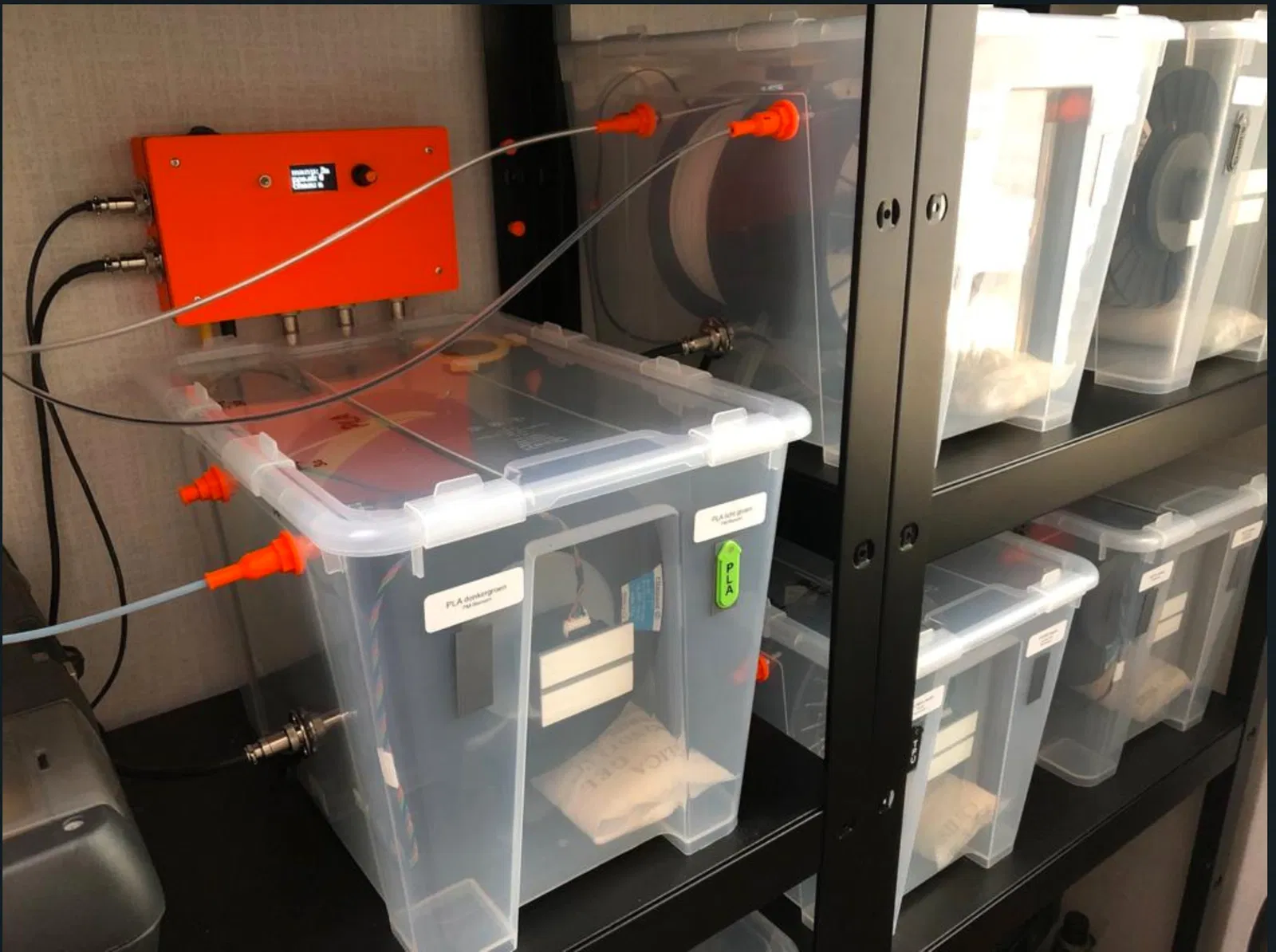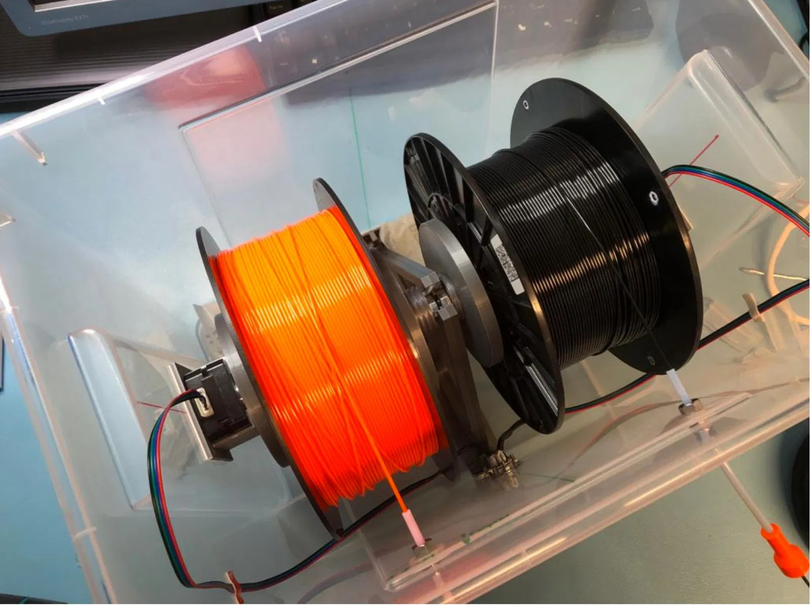 Không có MMU2S, hộp sấy với động cơ này cũng có thể được sử dụng, các động cơ sau đó chỉ đóng vai trò ma sát từ tính, không cần dây cáp. Bạn luôn có thể kết nối nó với trình điều khiển động cơ bước sau này, để có hành động cuộn dây thủ công, mà không cần mở hộp sấy.