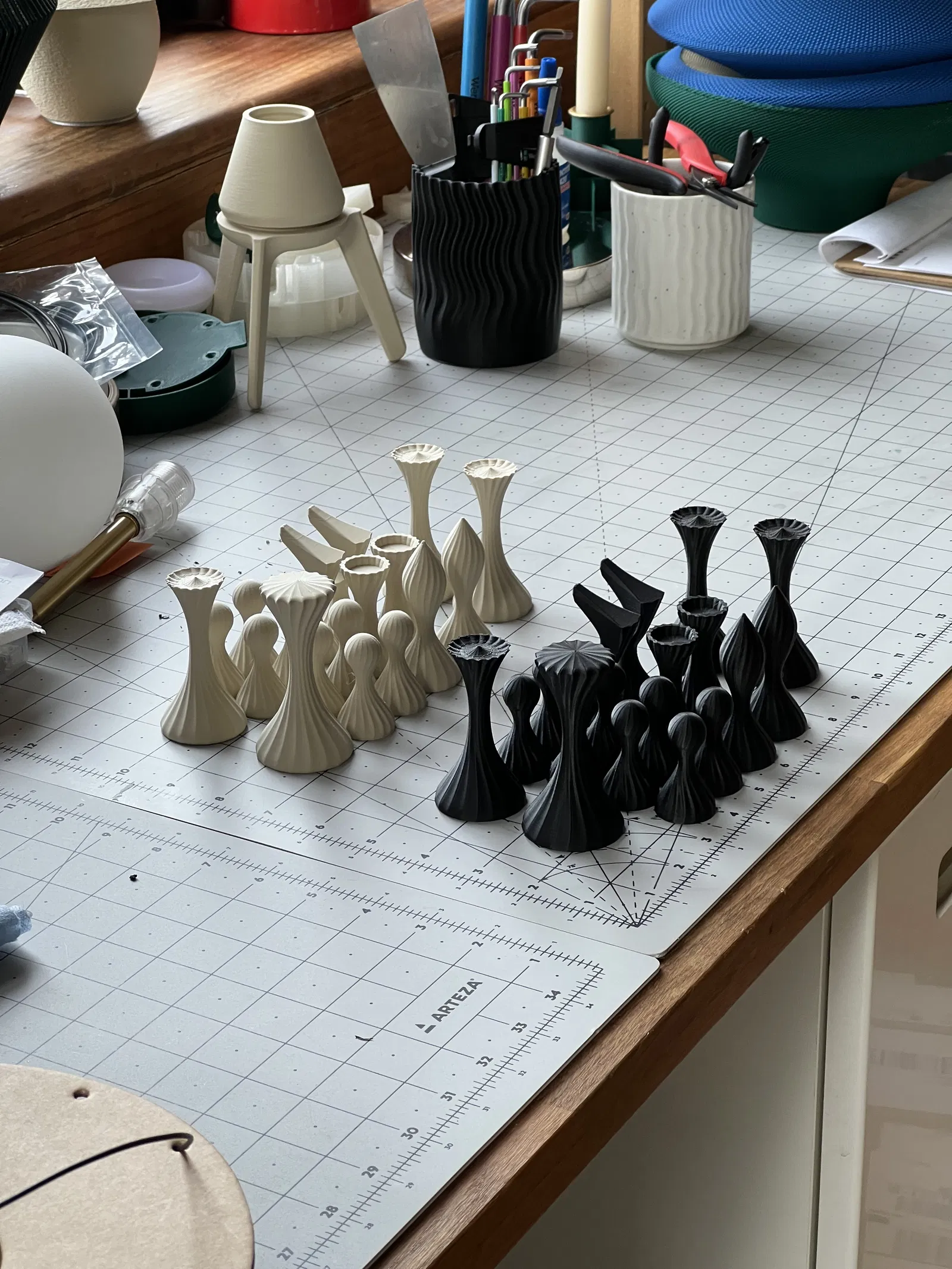 Vậy là nó đây rồi! Tôi đã cân nhắc việc bán chúng (tôi điều hành một công ty in 3D tên là Wooj - chúng tôi chủ yếu sản xuất đèn chiếu sáng) nhưng thời gian sản xuất so với số tiền có thể bán được không đáng. Tuy nhiên, tôi vẫn rất muốn thấy bộ cờ này được nhiều người sử dụng nên tôi sẽ phát hành miễn phí!