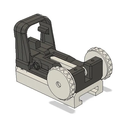 Sử dụng vít/bulong chỉ thị #6/m3.5 HOẶC #4/m2.6 (ví dụ: vít pan kim loại tấm, vít plastite, vít gỗ) và keo. Không cần hỗ trợ, các bộ phận có thể cần được đặt phẳng. In thân ngắm fauxolo với lựa chọn của bạn về bộ chuyển đổi và thanh vít và (2) bánh xe phù hợp của thanh. Nên có khoảng ~30g/2 giờ in, tùy thuộc vào cài đặt và khả năng máy của bạn. Lắp ráp nên như sau: