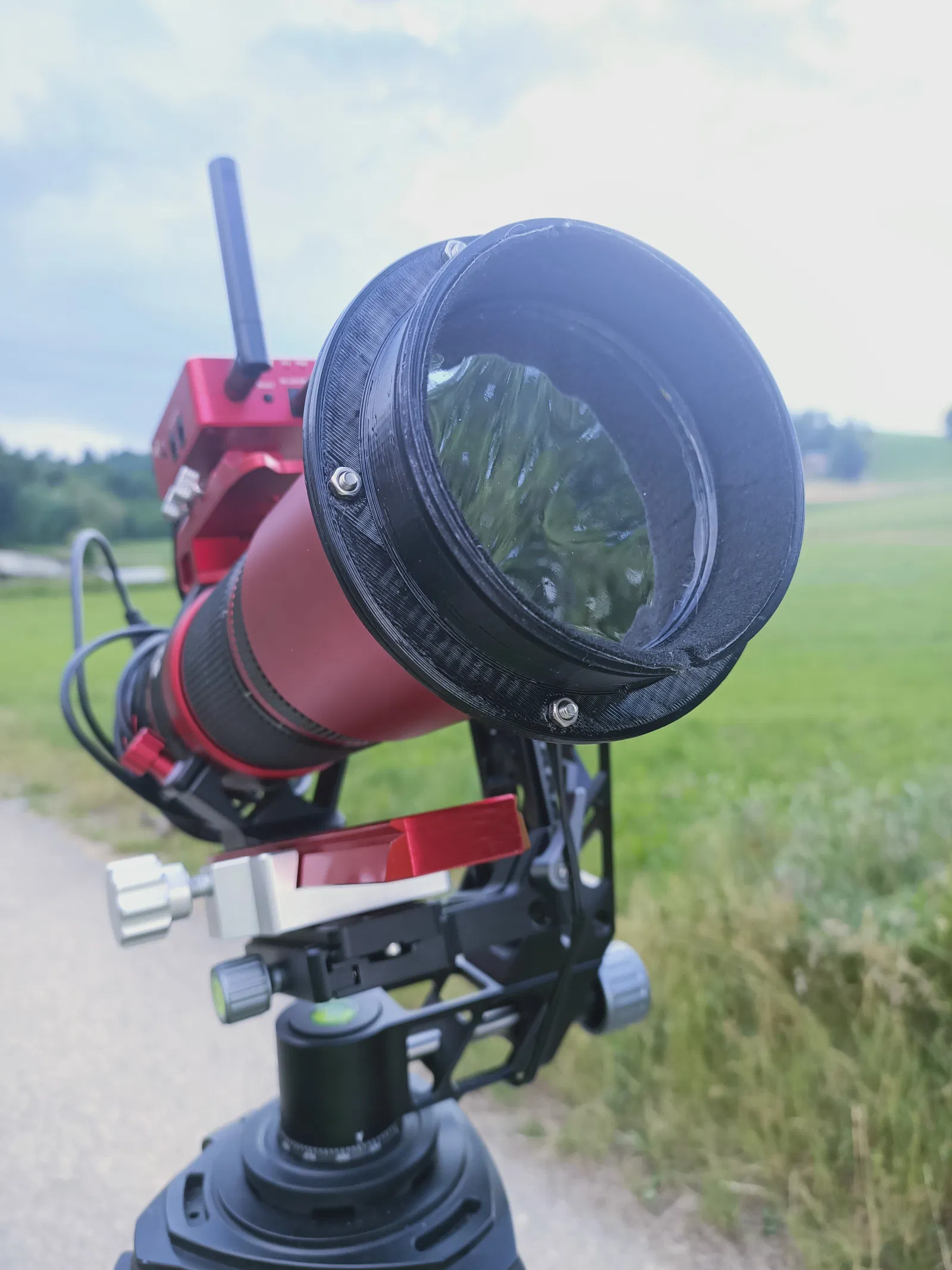 Giá đỡ lá chắn nắng cho kính thiên văn Redcat51, kèm nắp bảo vệ và lỗ thông hơi. Bộ giá đỡ này giúp bạn dễ dàng gắn lá chắn nắng Baader AstroSolar® OD 5.0 vào Redcat51, đảm bảo vừa vặn và bảo vệ tối ưu.