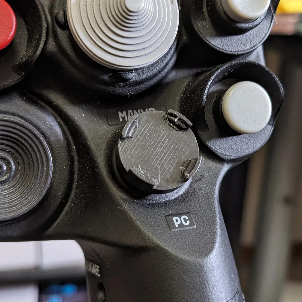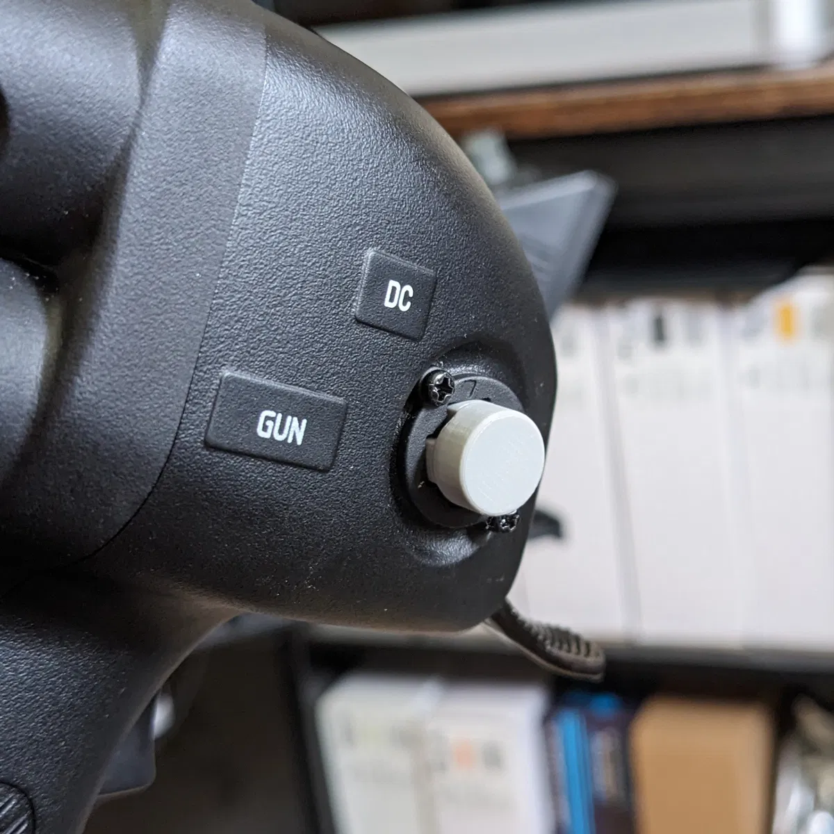 • Nắp hai chiều chống nhiễu màu xám. Có phiên bản cao và thấp. Phiên bản cao trông chân thực hơn và dùng tốt trên nắp "RESET" ở ngón cái. Tất cả các nắp đều là 4 chiều, nhưng do độ rộng của nút, bạn sẽ mất đi hướng phải. Phiên bản thấp dùng tốt trên nắp "DC" ở ngón trỏ nếu bạn muốn giữ nắp 4 chiều ở đó tương tự như cần điều khiển Winwing F-16.