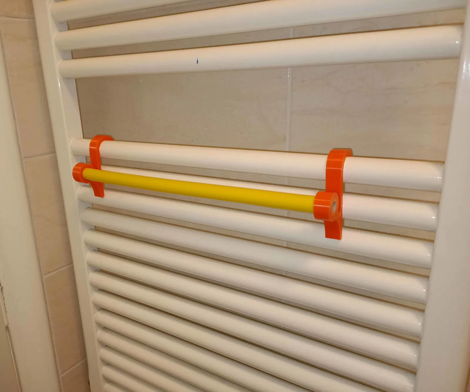 Ở nhà có con nhỏ thì chẳng bao giờ đủ chỗ phơi đồ, nên mình tạo ra cái móc treo đồ đơn giản này để gắn vô cái máy sưởi nhà tắm. Để chịu nhiệt tốt, anh em in bằng PETG nha. Dùng ít nhất 4 lớp vỏ và 15% đổ đầy kiểu cubic. Để làm cái thanh đỡ, thì dùng ống nước và ống ga đa lớp thông thường với đường kính chuẩn 16 mm.