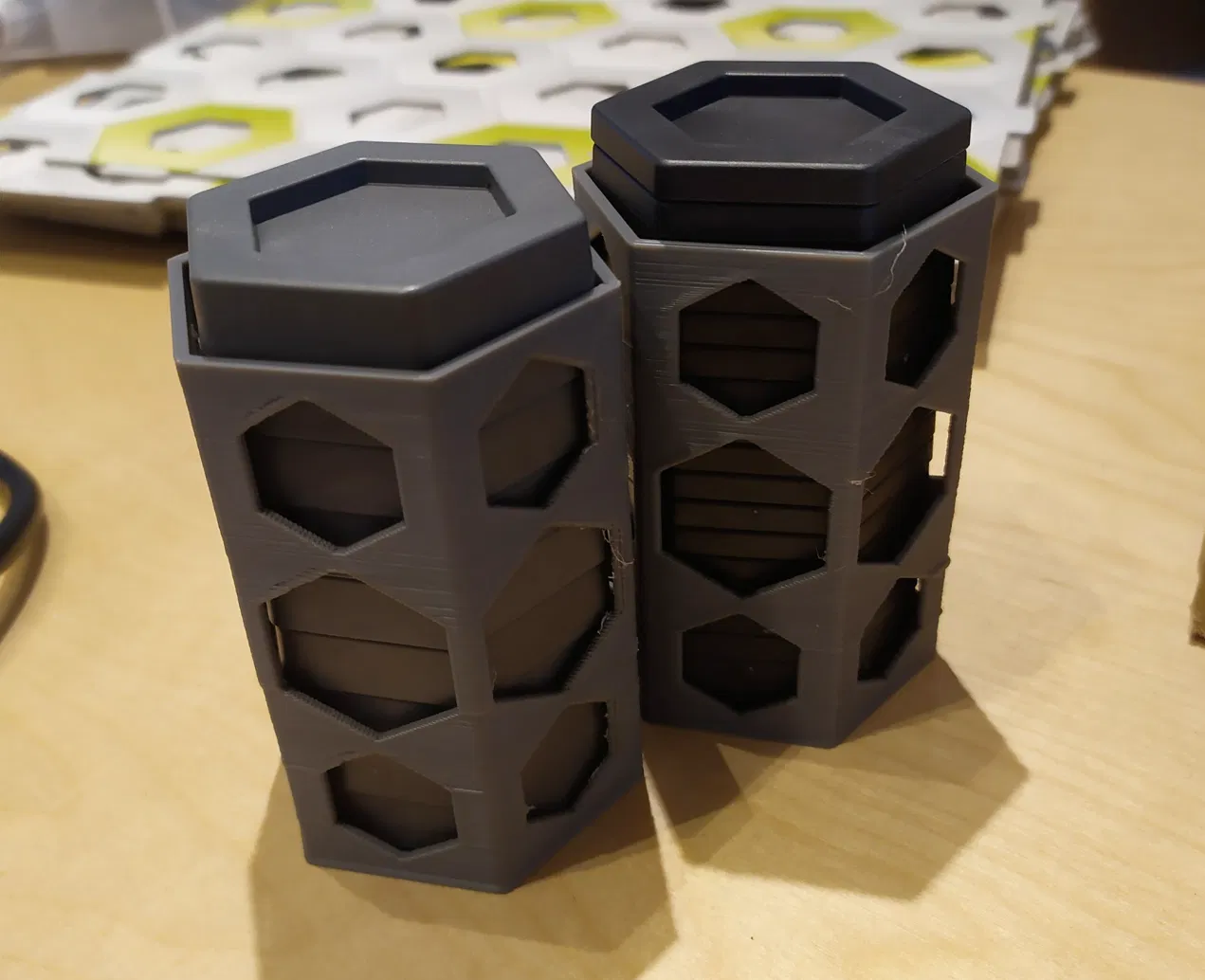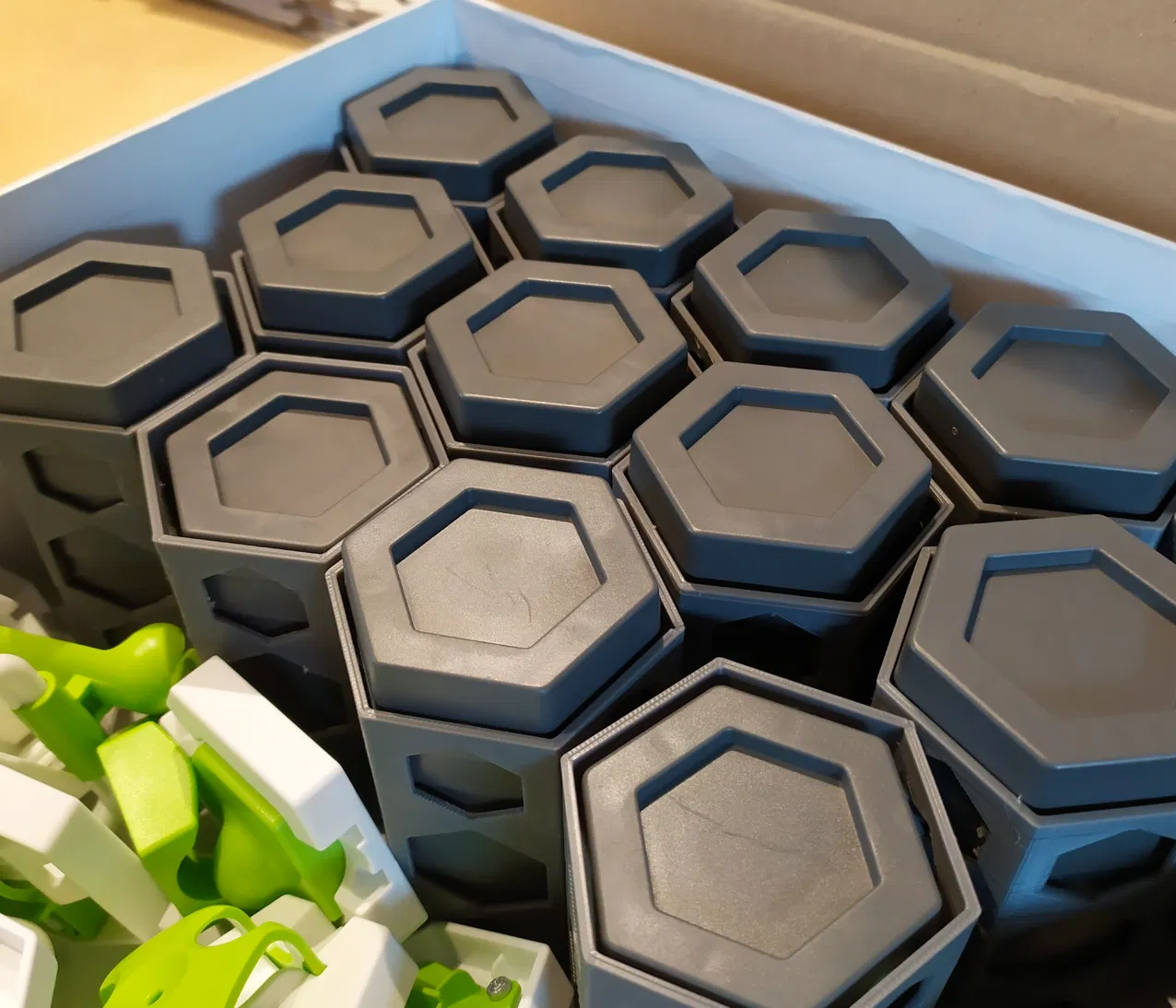 Tui lấy cảm hứng từ cái này nè ([https://www.thingiverse.com/thing:4099491](https://www.thingiverse.com/thing:4099491)) rồi tui chế ra cái hộp để đựng mấy miếng đệm (spacer) cho nó gọn gàng, dễ kiếm khi chơi Gravitrax.