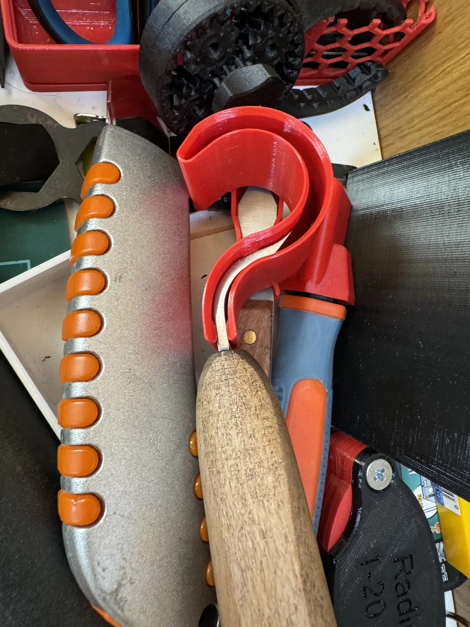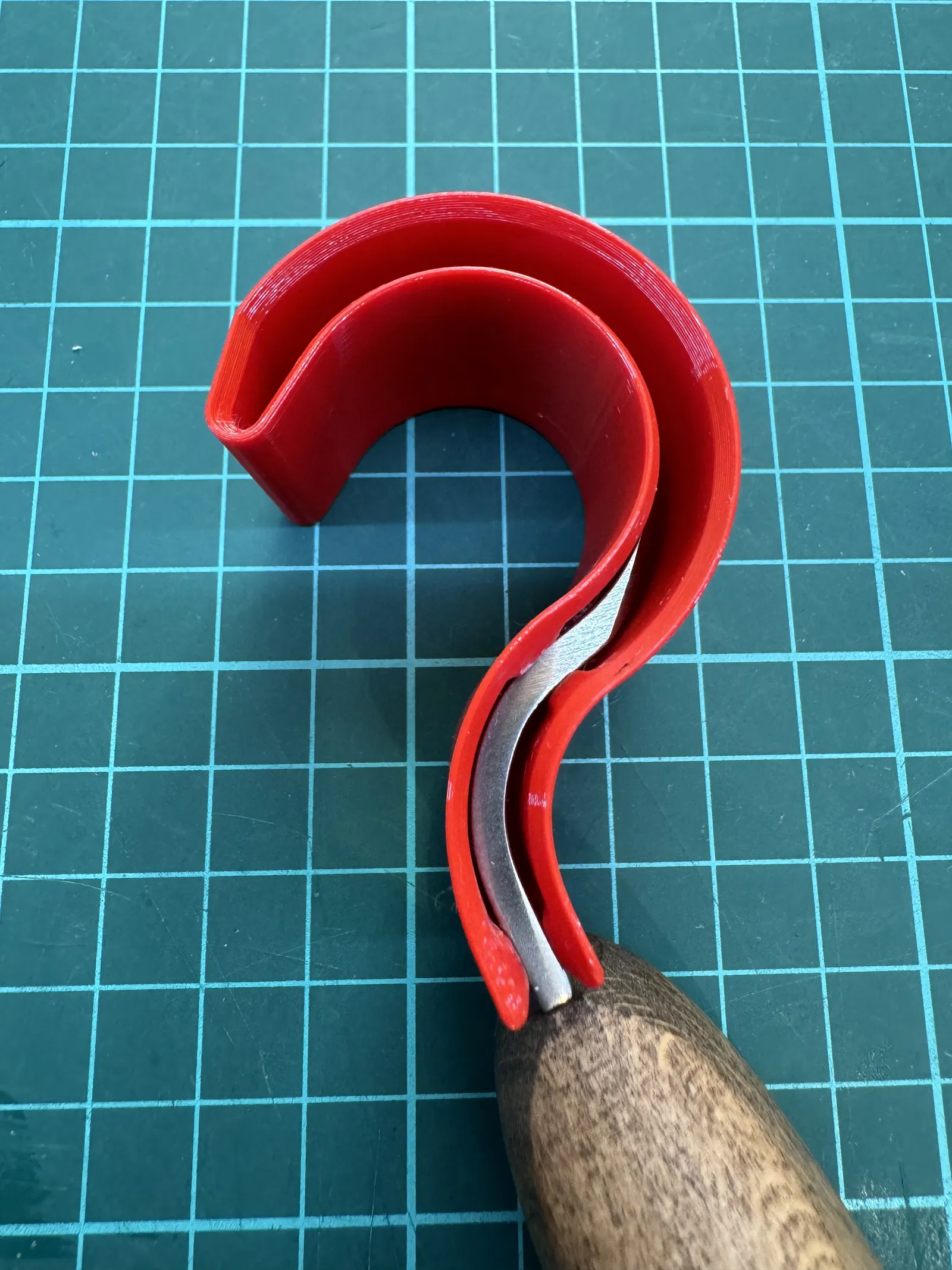 Nắp chụp bảo vệ lưỡi dao và ngón tay cho dao khắc thìa Narex. Dùng PETG, lớp 0.2mm, không cần support. File F3D có sẵn. Thích hợp cho cả công việc dọn dẹp bản in 3D.