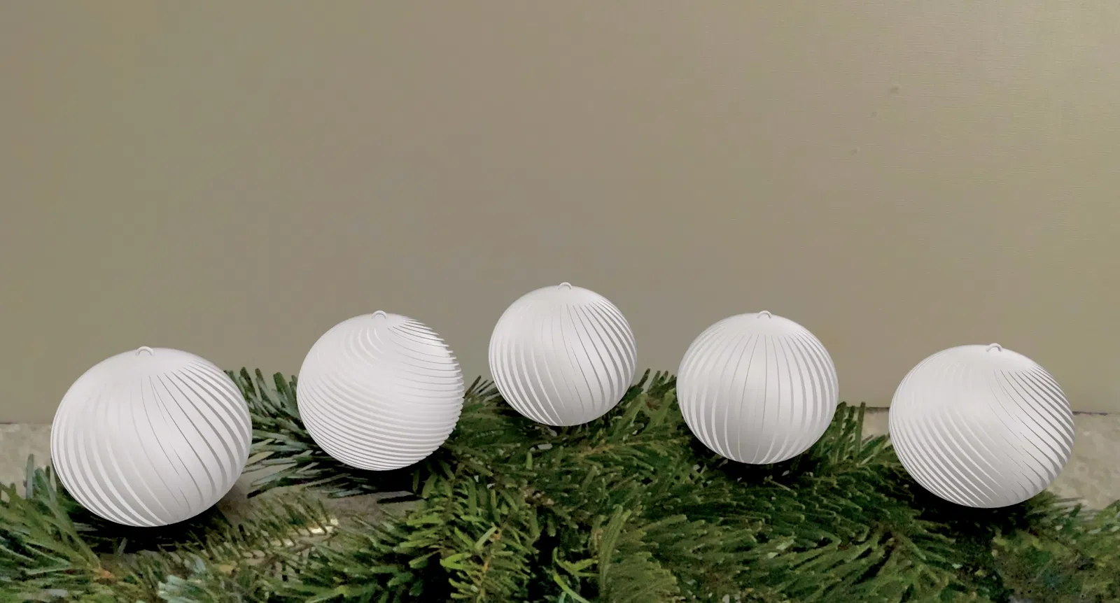 Khám phá bộ sưu tập quả châu Giáng sinh độc quyền này với năm quả châu độc đáo được thiết kế hài hòa – hoàn hảo cho một bầu không khí lễ hội. Mỗi quả châu không chỉ được tạo hình tinh xảo mà còn được trang bị bộ phận hỗ trợ tích hợp thông minh. Điều này cho phép in 3D dễ dàng, chỉ cần hỗ trợ trên mặt bàn in. Mang lại sự thanh lịch, kiểu dáng cho cây thông Noel của bạn và chọn in quả châu màu trắng để tạo ra một phong cách trang trí Bắc Âu. Màu sắc trang nhã này hòa quyện hoàn hảo vào mọi không gian lễ hội và mang đến cho cây thông của bạn một nét sang trọng, giản dị. Hãy ăn mừng những ngày lễ với một chút đổi mới và phong cách Bắc Âu!