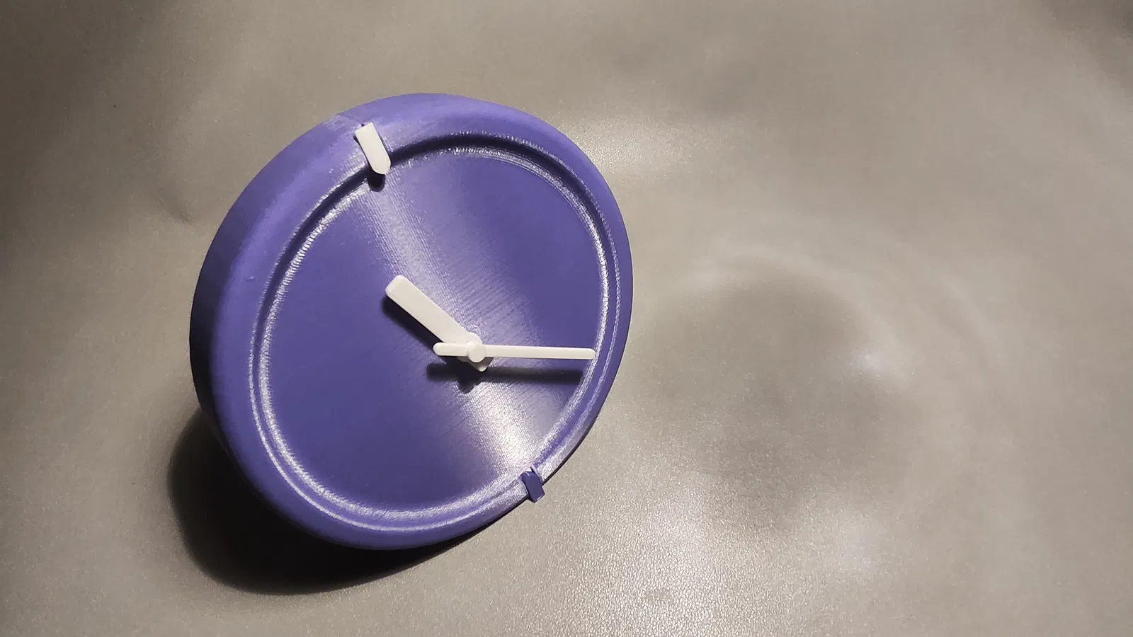 Đồng hồ để bàn với kích thước 160mm, sử dụng bộ máy Quartz 55.8x55.8mm. Có thể treo tường hoặc để bàn, tùy chỉnh màu sắc và cố định bằng keo. Khuyến nghị tỉ lệ điền đầy 15-20% và chiều cao lớp in 0.2mm.