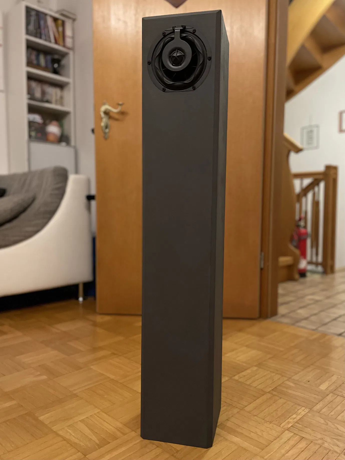 Đây là một miếng độn tùy chọn cho loa "Kiano" của tôi. Nếu bạn không thể cắt được hình dạng kỳ lạ của củ loa mid-bass, chỉ cần cắt hình tròn, lắp miếng này vào, dán vào và lấp đầy bằng vật liệu trám thân xe hơi (car body filler).