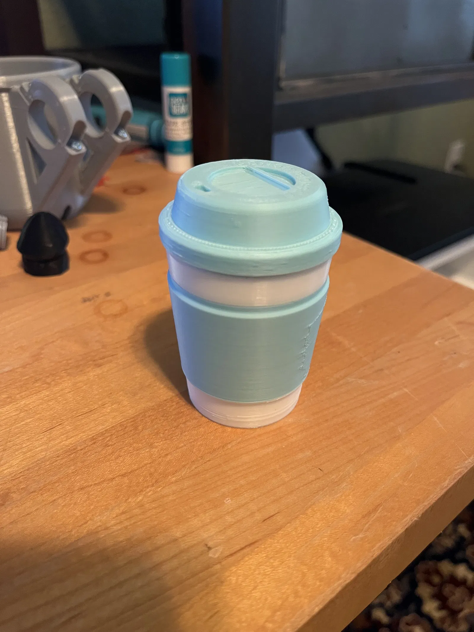 In ấn: In nắp úp xuống và cốc để đứng, không cần hỗ trợ (supports).