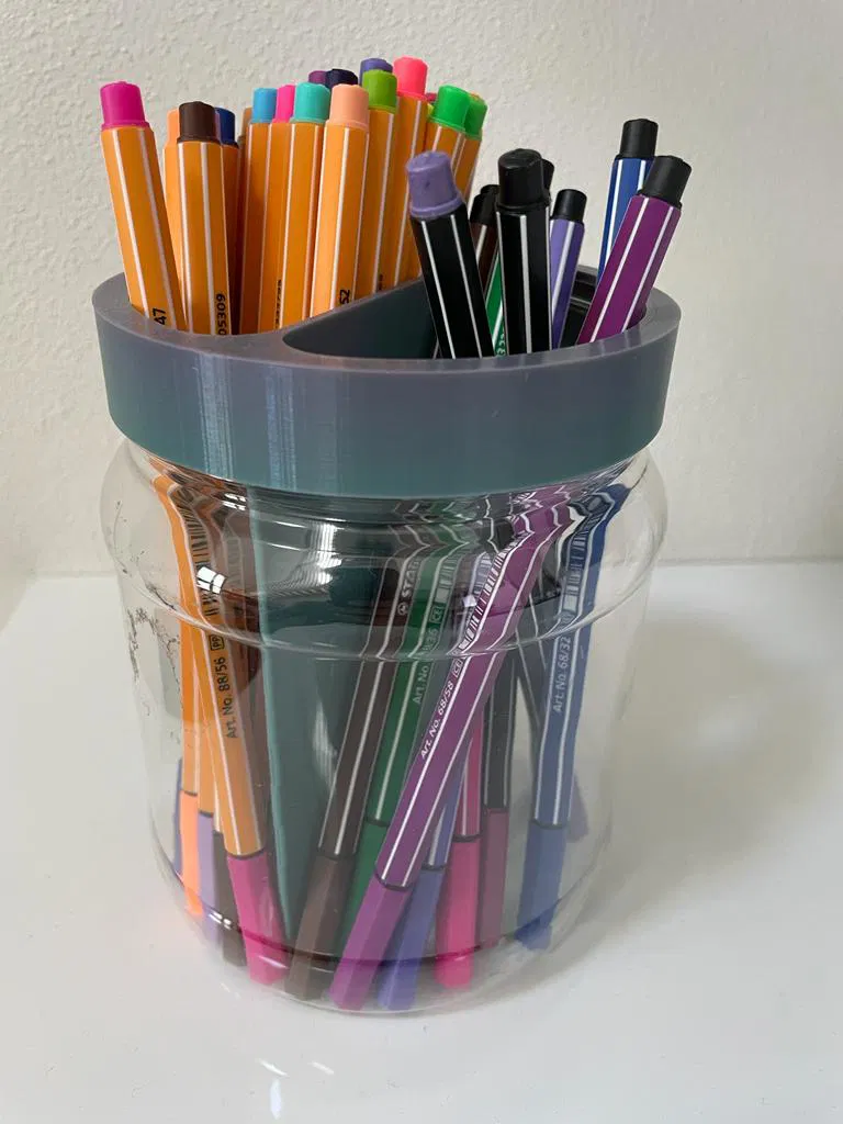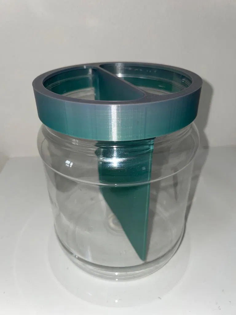 Nắp hũ đựng bút 2 ngăn, thiết kế vừa vặn cho hũ có đường kính lỗ 95mm và độ sâu 125mm. Giúp bạn sắp xếp bút viết gọn gàng và thẩm mỹ hơn.