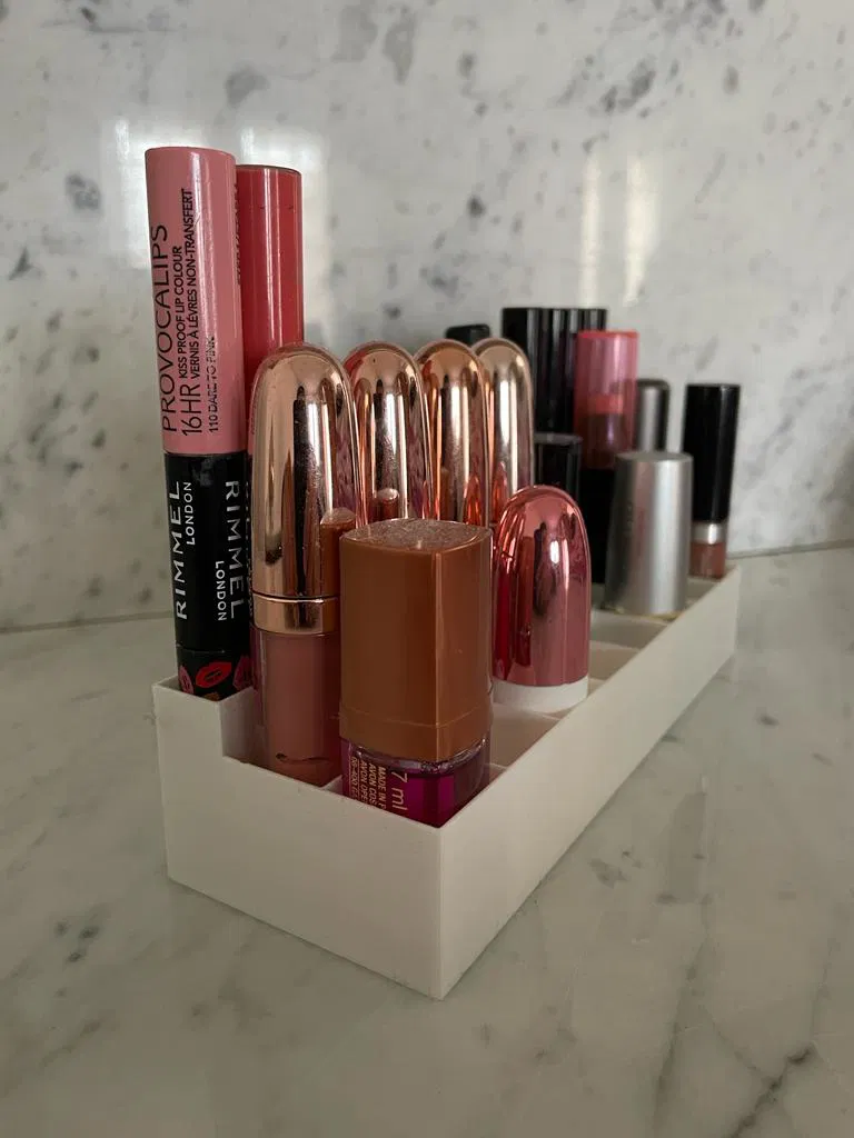 Cần chỗ để mấy thỏi son yêu thích? Kệ đựng son này có 16 ô 22mm x 22mm và 12 ô 15mm x 15mm, tha hồ sắp xếp gọn gàng luôn nha!