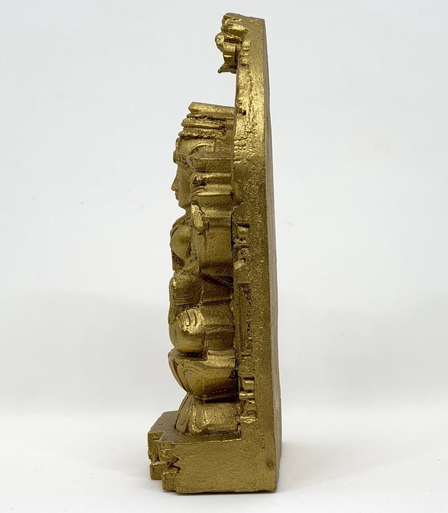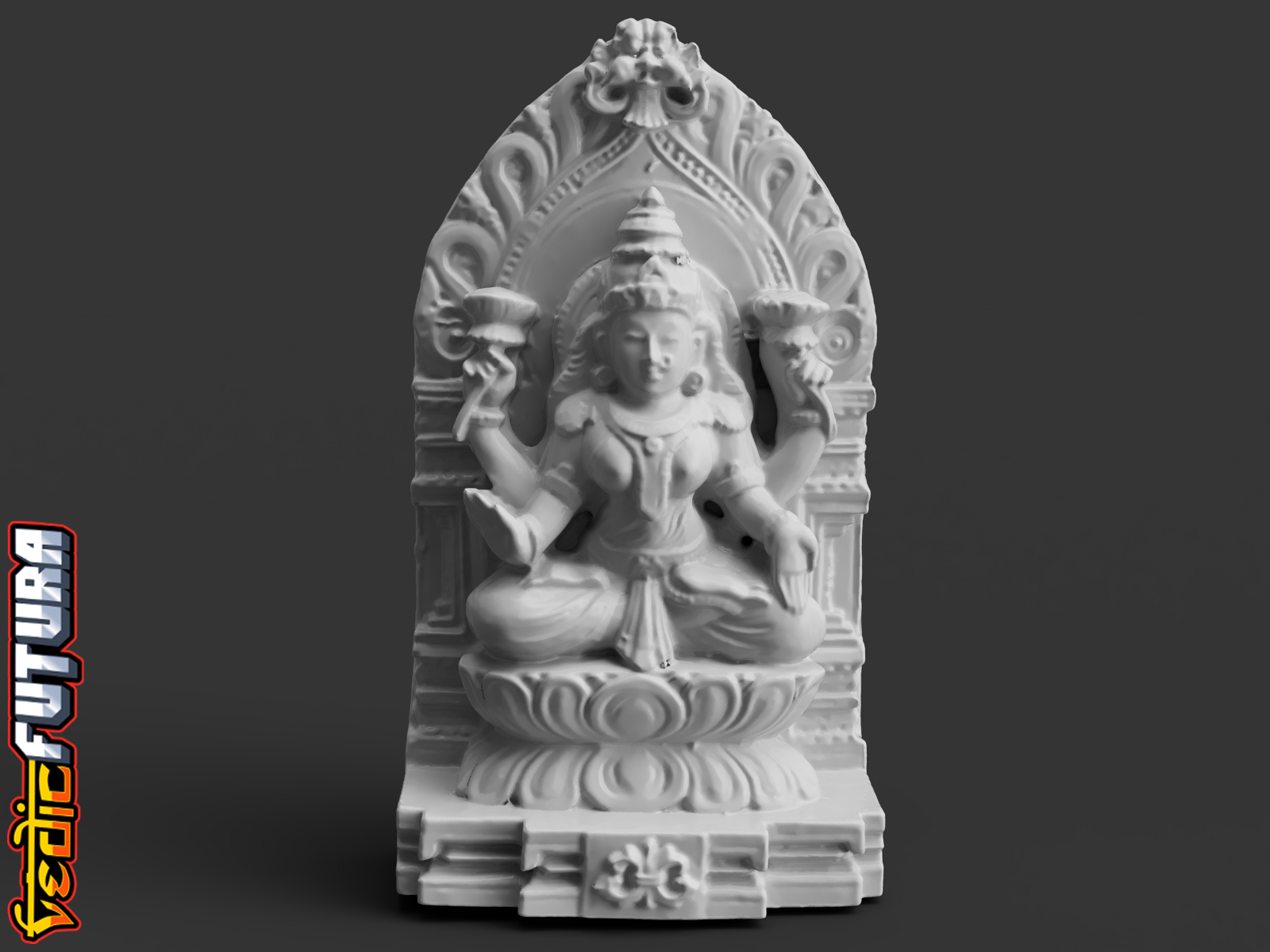 Lakshmi, nữ thần giàu có, may mắn và thịnh vượng trong Ấn Độ giáo, được miêu tả trên ngai hoa sen với biểu tượng Kirtimukham. Mô hình này mang đậm nét văn hóa và tâm linh Ấn Độ, với các chi tiết tinh xảo thể hiện các phẩm chất của nữ thần.