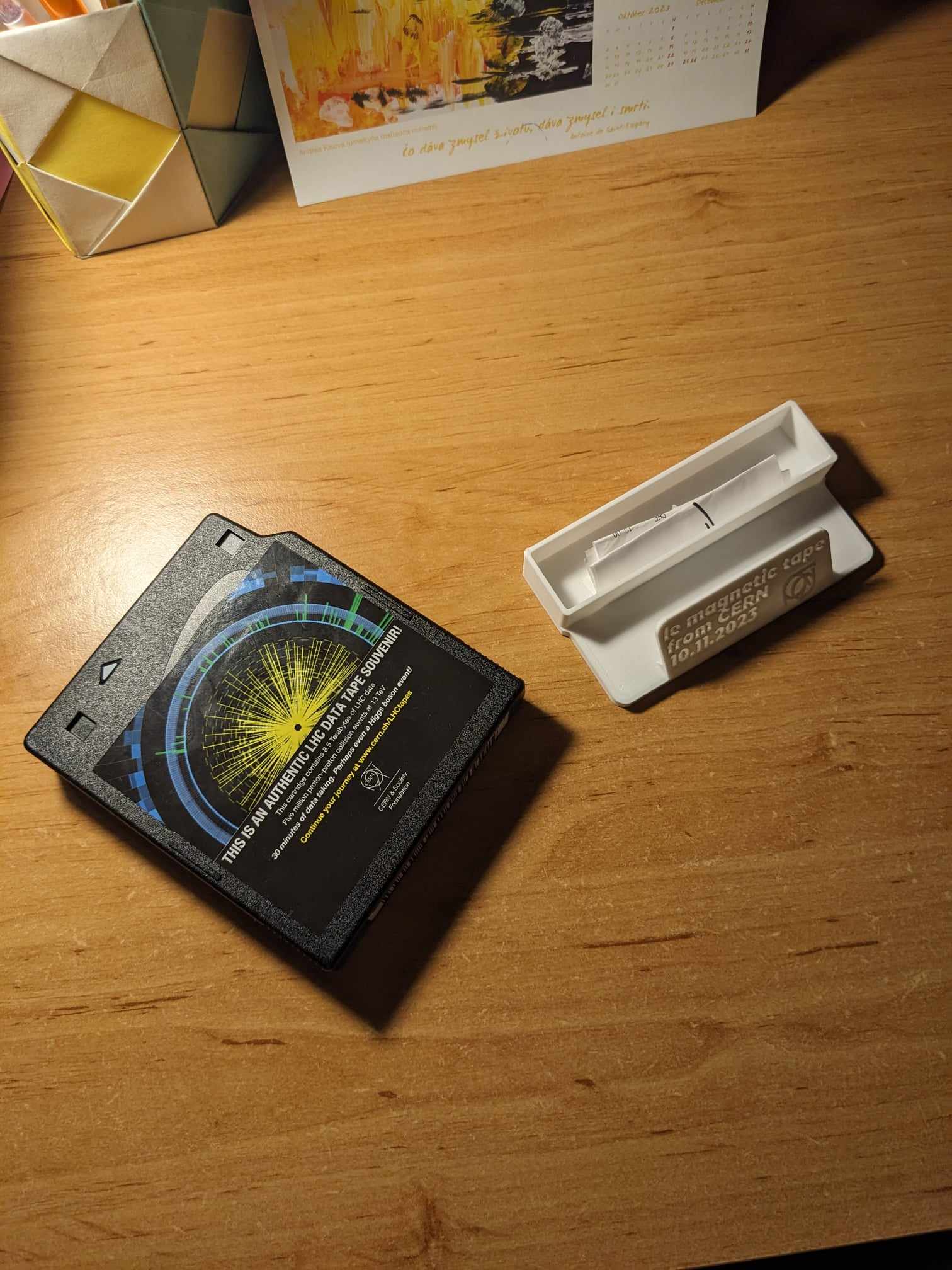 Dây đựng băng từ CERN LHC xịn sò, mua làm kỷ niệm tại cửa hàng quà tặng CERN Science Gateway. Một số cuộn băng có thể chứa dữ liệu boson Higgs. Có 2 phiên bản: thường và "pháp". Tải file Inventor về tùy chỉnh thoải mái!