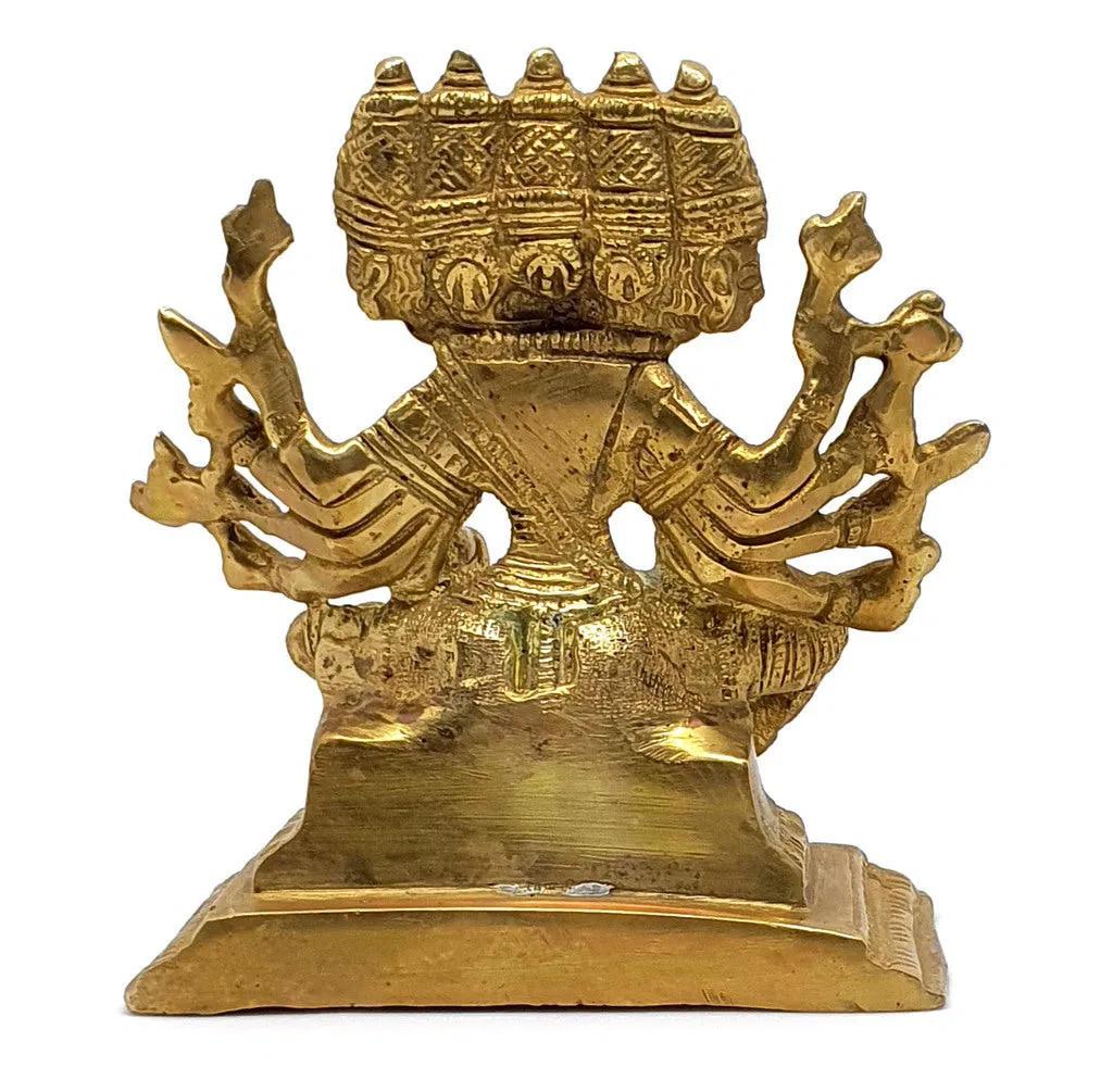Bà xuất hiện với năm khuôn mặt và mười bàn tay cầm, kiếm, hoa sen, đinh ba, đĩa, đầu lâu, Varada ở tay trái và roi, thòng lọng, một bản thảo, lọ cam lồ và Abhaya ở tay phải.