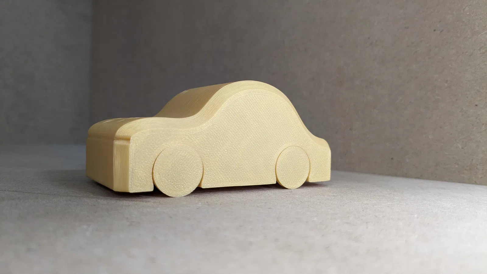 Bánh xe xoay được in trên một lần in duy nhất. Mẫu xe hơi đồ chơi này được thiết kế để trẻ em có thể tự in dễ dàng, không cần hỗ trợ hay lắp ráp phức tạp.